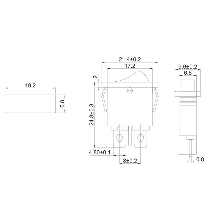 Выключатель клавишный 250V 6А (2с) ON-OFF (вкл - выкл) черный .