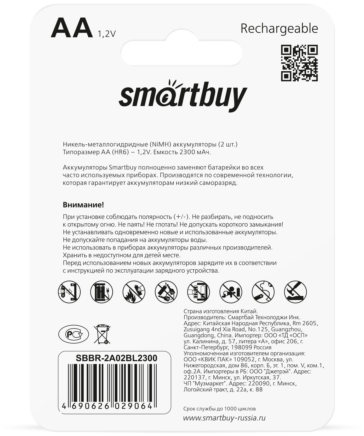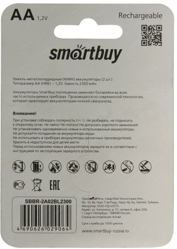 Аккумулятор Smartbuy R06 2300 mAh BL блистер. (Цена за 2шт)