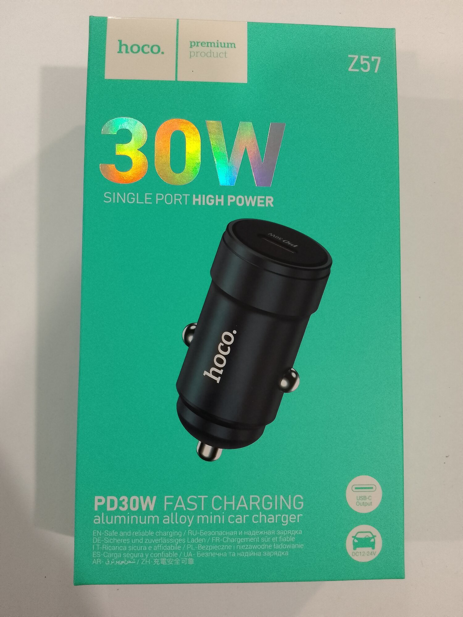 Автомобильное зарядное устройство, 1 Type-C HOCO Z57A Glorious, 3.0A, металл, QC3.0, PD30Вт, цвет: серый