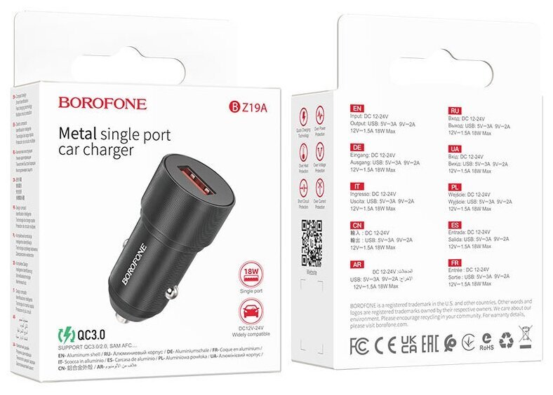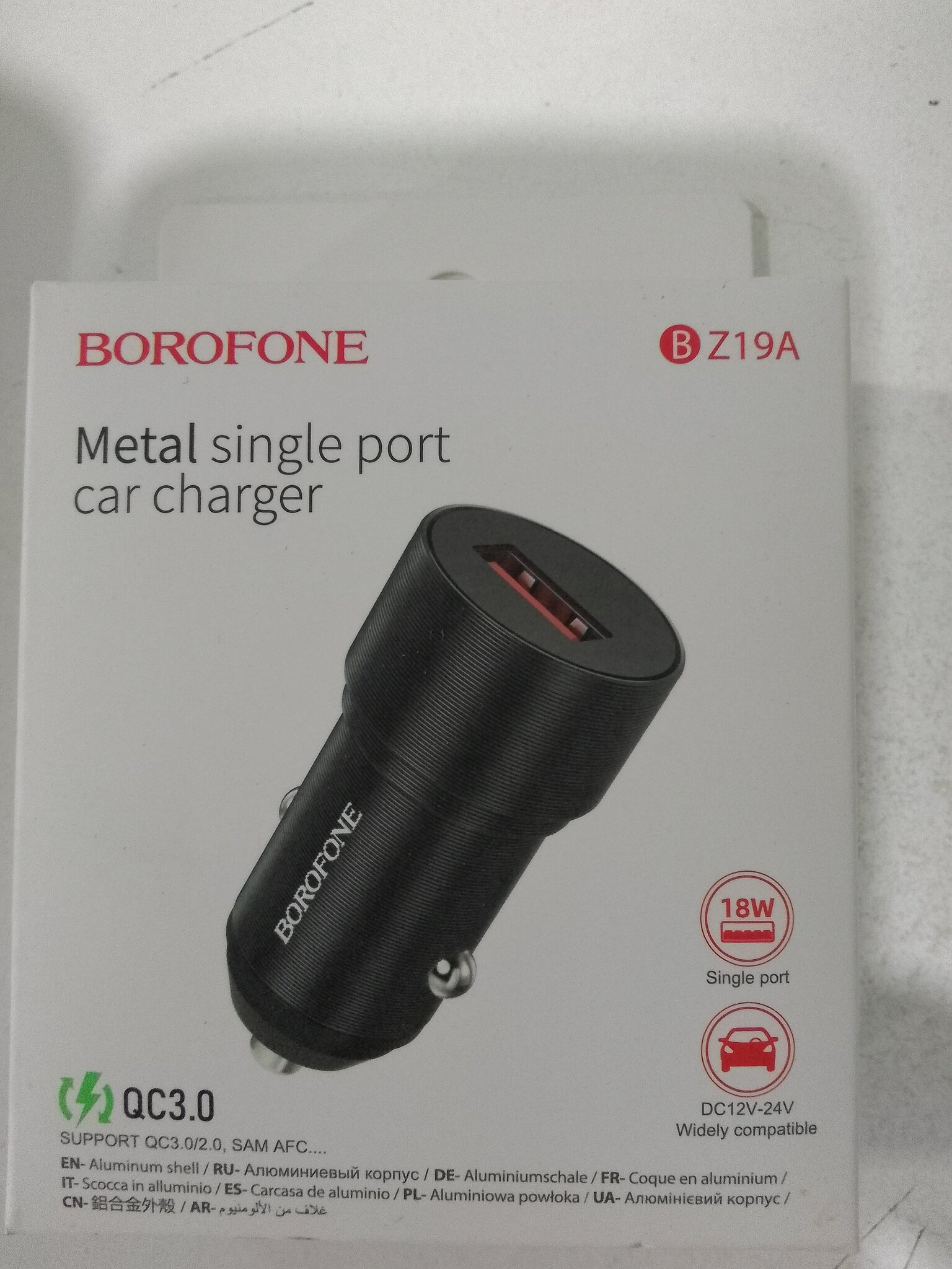 Автомобильное зарядное устройство 1 USB Borofone BZ19A, Wisdom, 18Вт, QC3.0, цвет: чёрное
