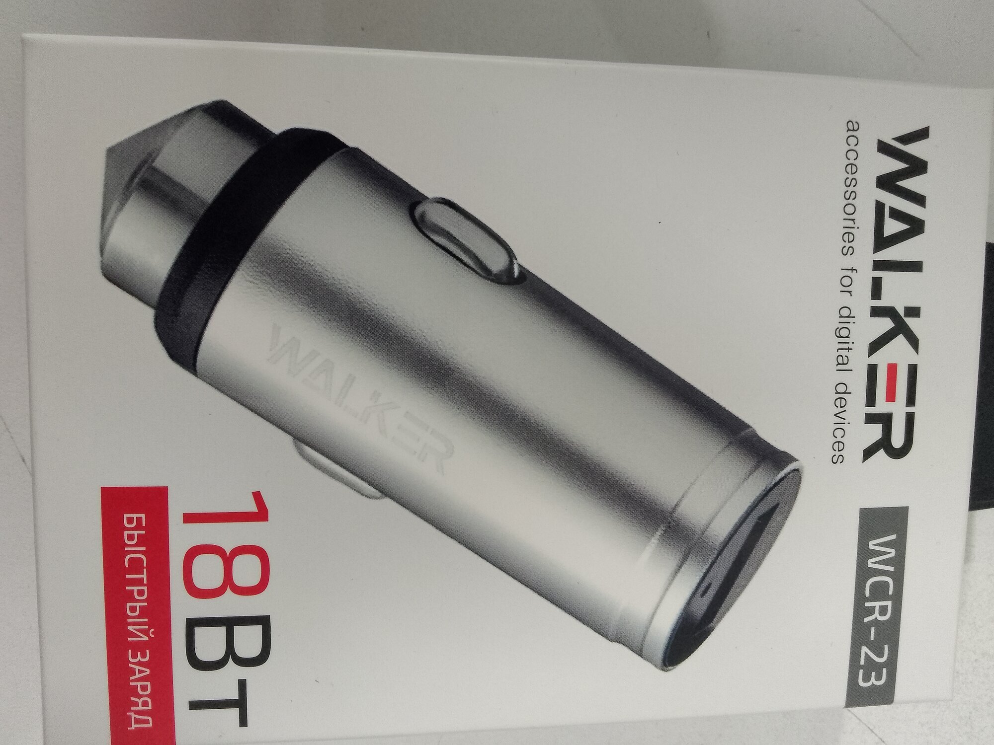 Автомобильное зарядное устройство -1USB WALKER WCR-23 3А, быстрый заряд QC 3.0 серебряное