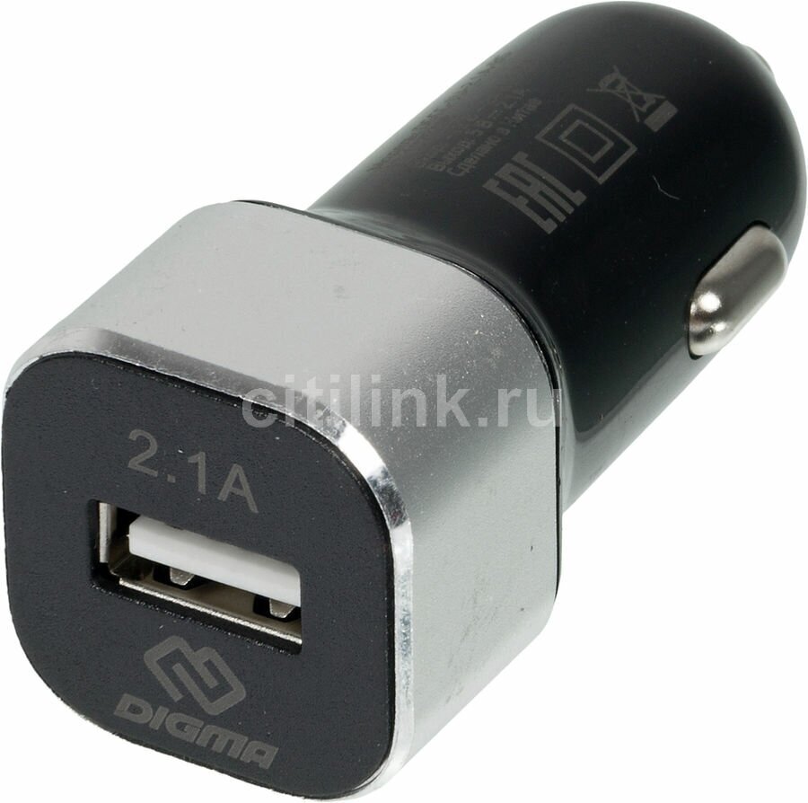 Автомобильное зарядное устройство Digma DGCC-1U-2.1A универсальное черное