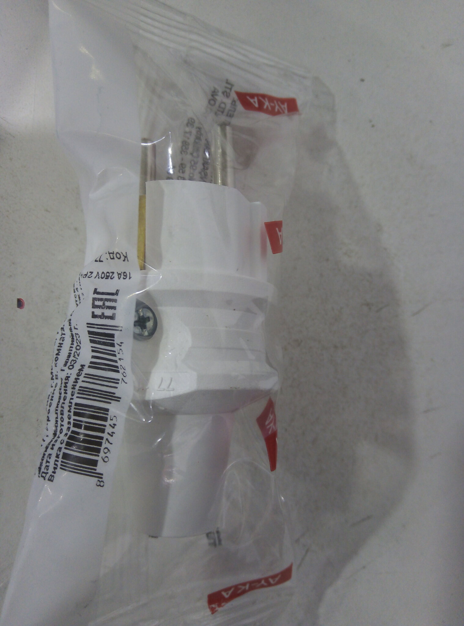 AY-KA (АЙКА) вилка 16A 250В (прямая, белая,  земля) (Турция)