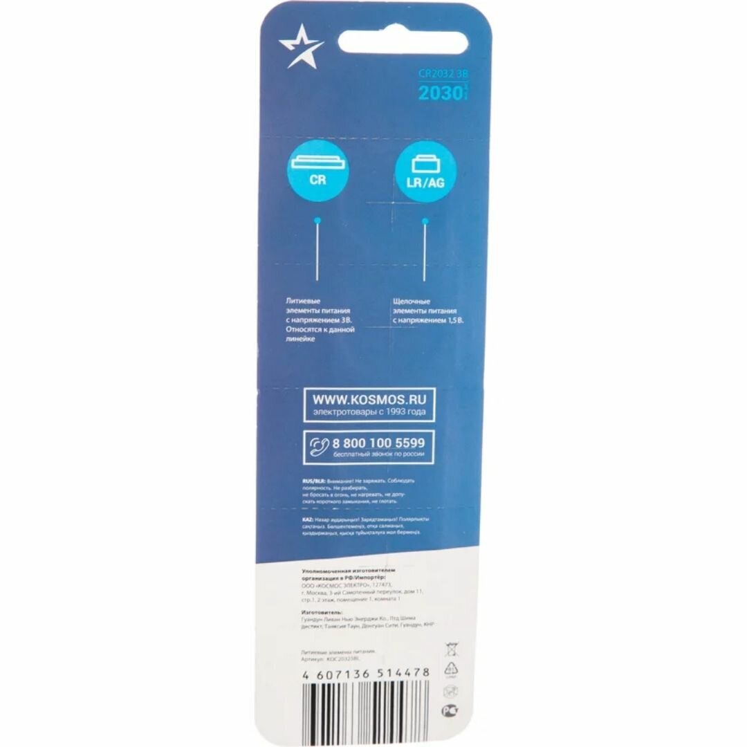 Батарейка CR2032 Космос BL (Цена за 5шт)