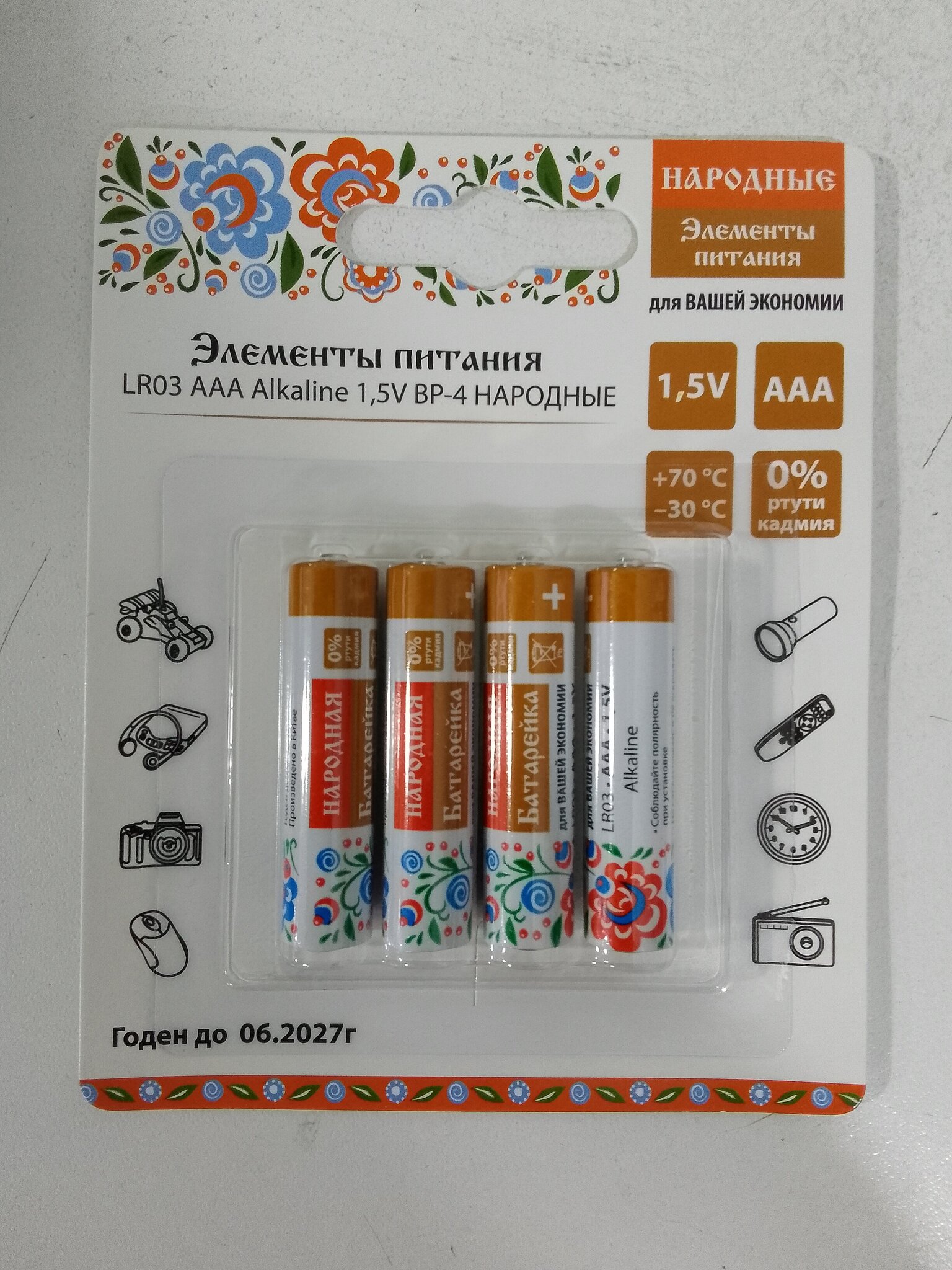 Батарейка Народные LR03 AAA 1,5V алкалиновая (Цена за 4шт)