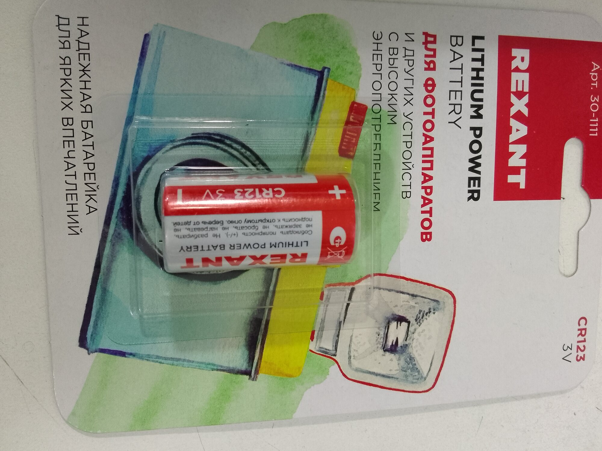 Батарейка REXANT CR123, литиевая, блистер