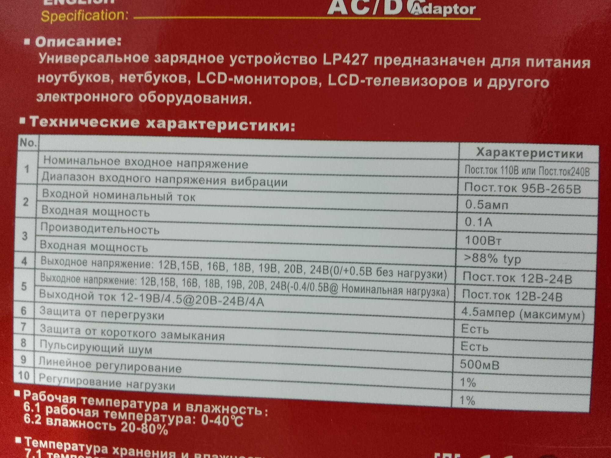 Блок питания для ноутбука LP508 12V-24V 100W + 8 Насадок