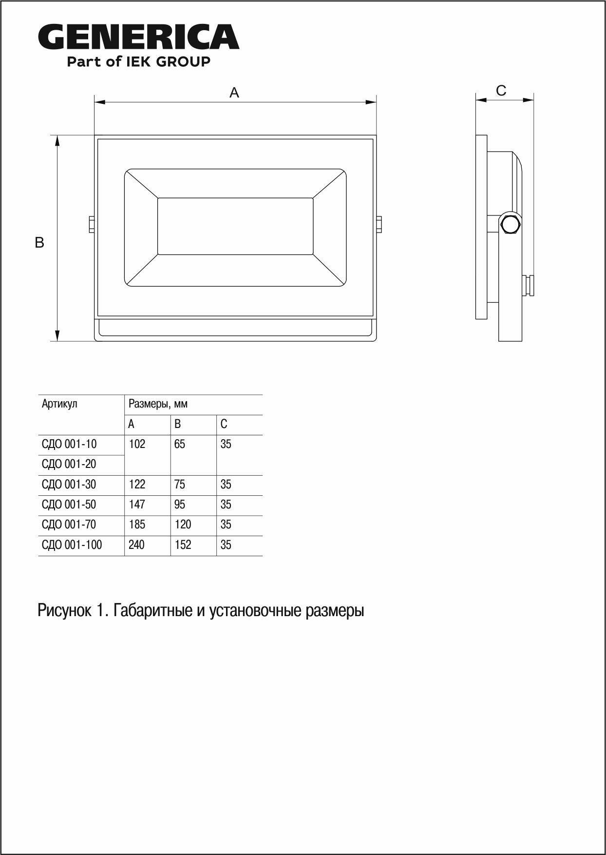 IEK GENERICA Прожектор св/д СДО 001 50W(4000lm) 6500К 6К 156x38x104 черн IP65 LPDO501-050-65-K02-G