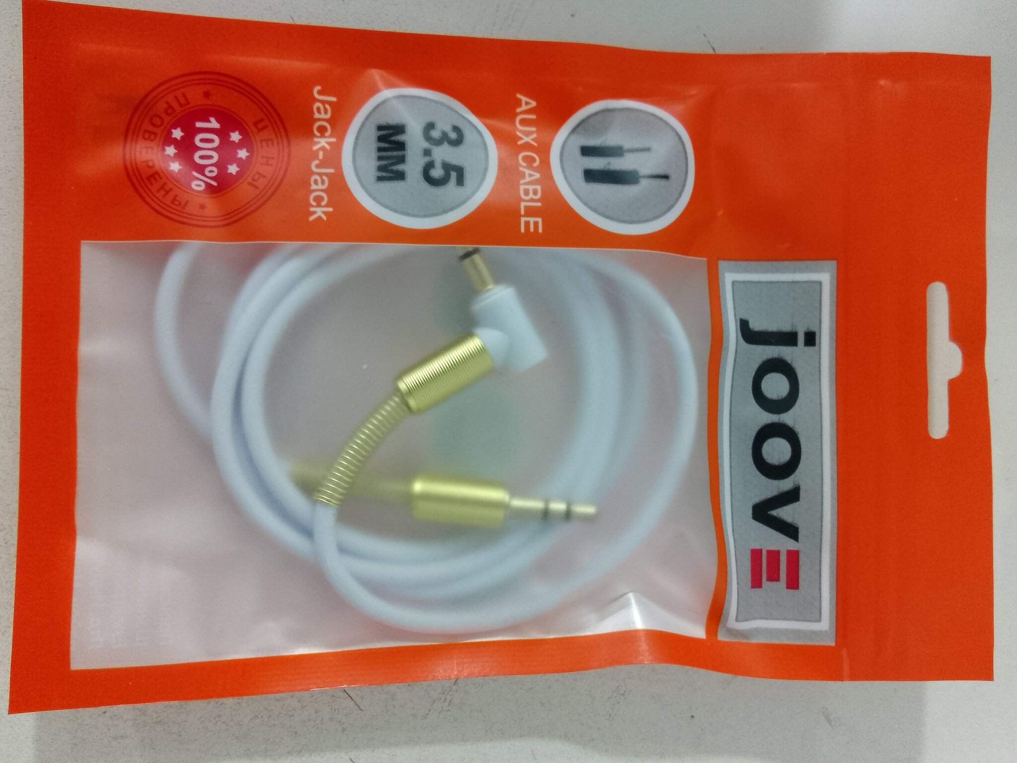 Кабель Аудио 3,5 Jack - 3,5 Jack  (aux) "JOOVE" 1м, белый, металл, Угловой штекер