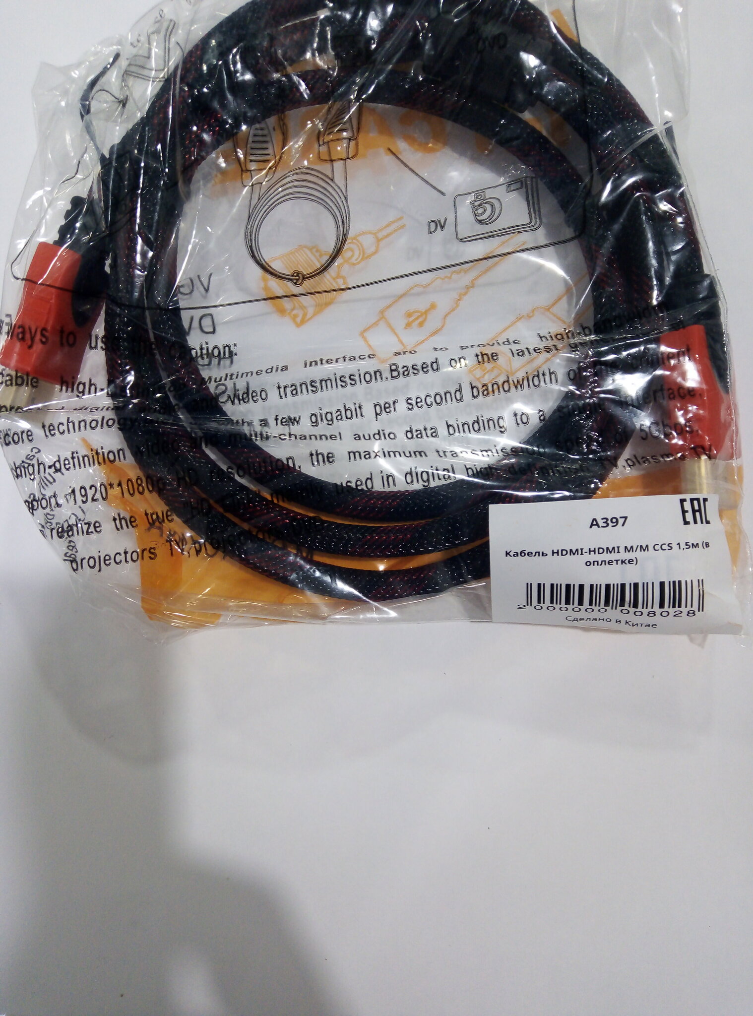 Кабель HDMI-HDMI 1,5 м