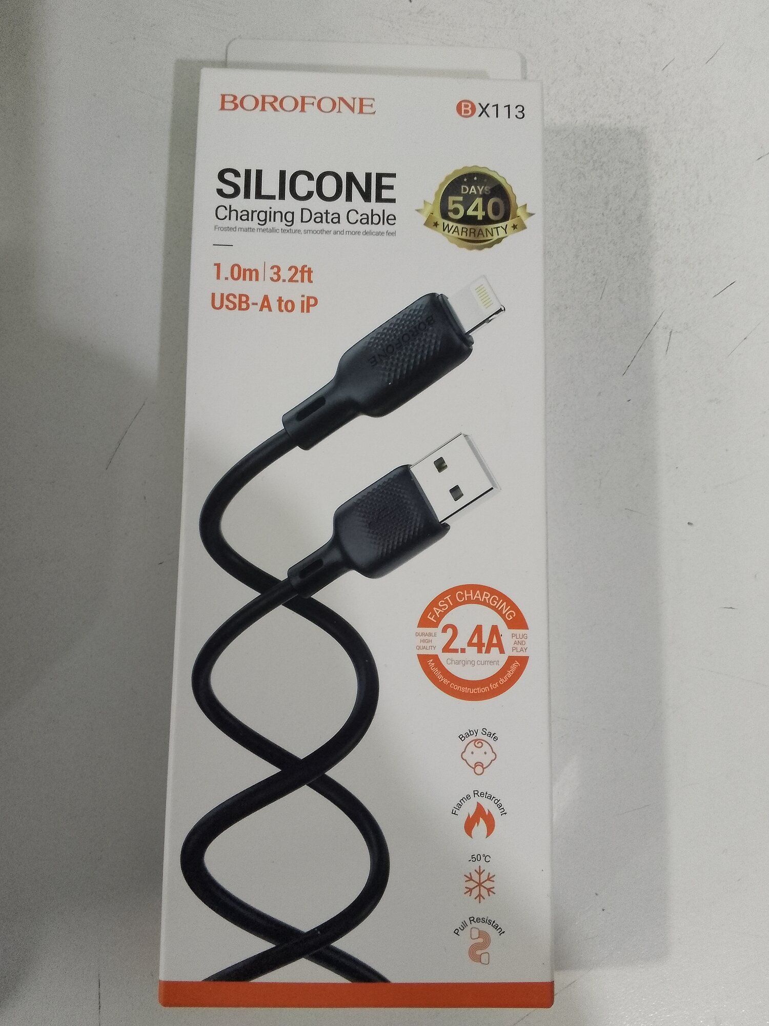 Кабель iPhone Lightning BOROFONE BX113 силикон 1м, 2.4A. черный