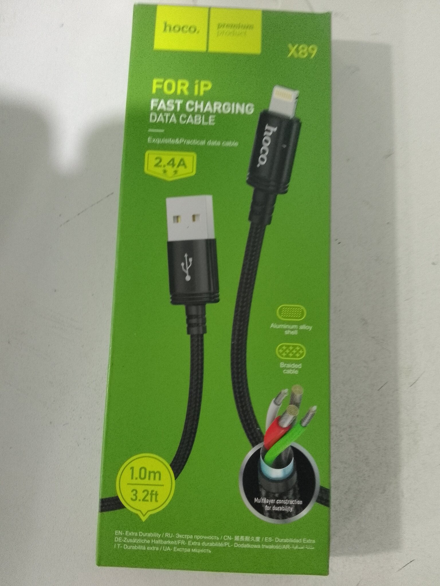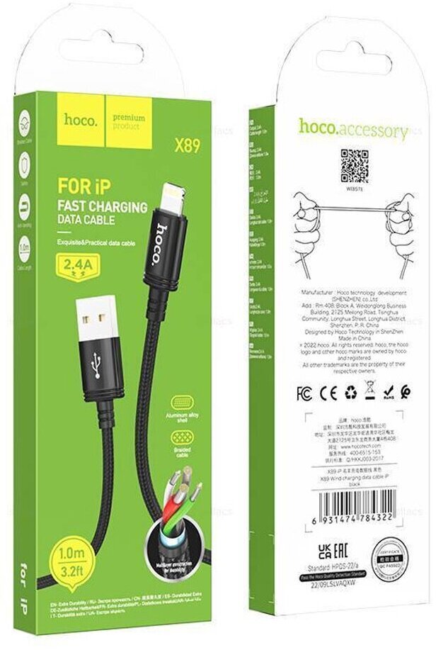 Кабель iPhone Lightning HOCO X89 Wind, 1м, тканевый, 2.4A черный