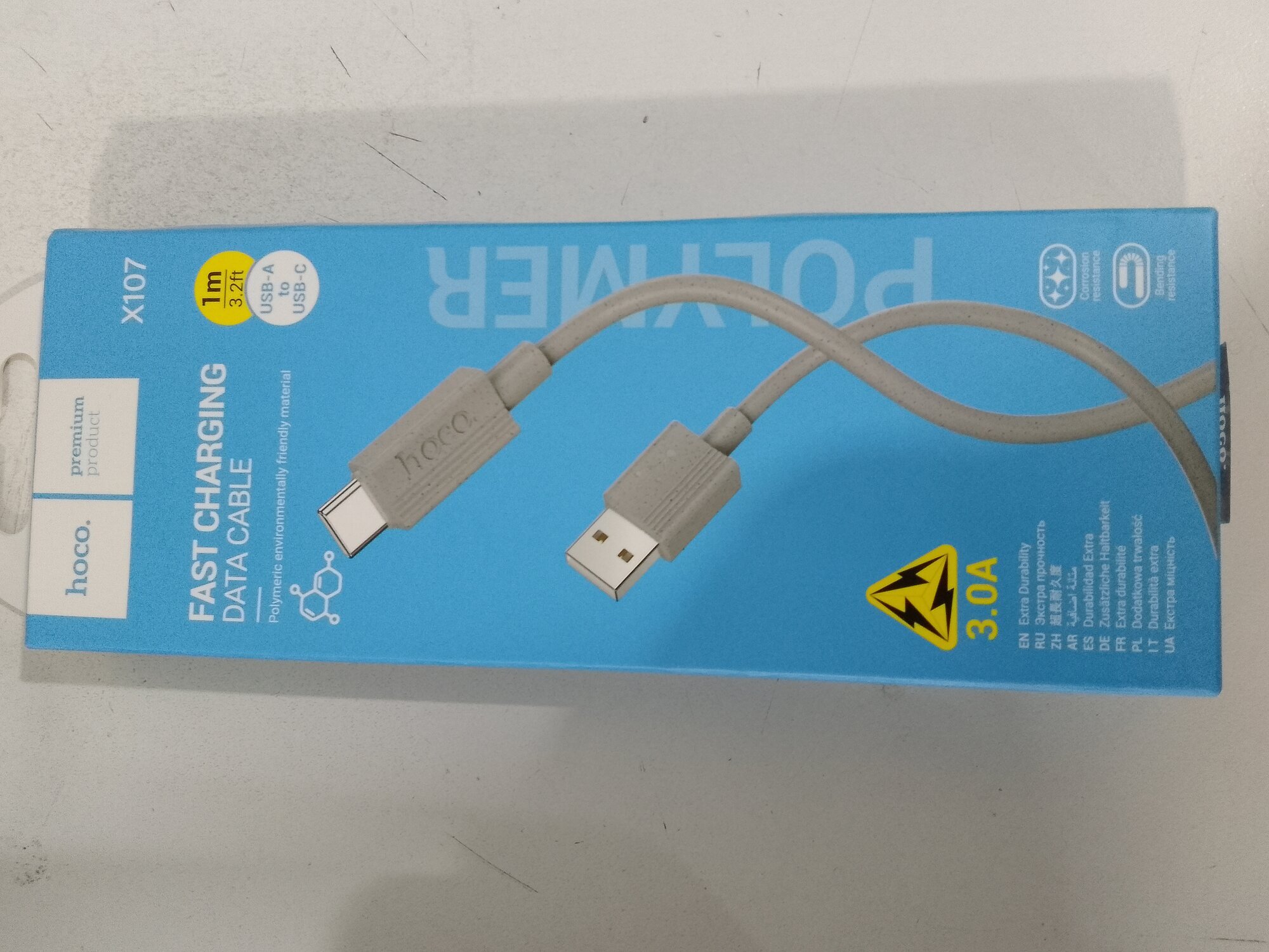 Кабель питания HOCO X107 Favor, 1 м, USB Type-C, 3.0A, серый
