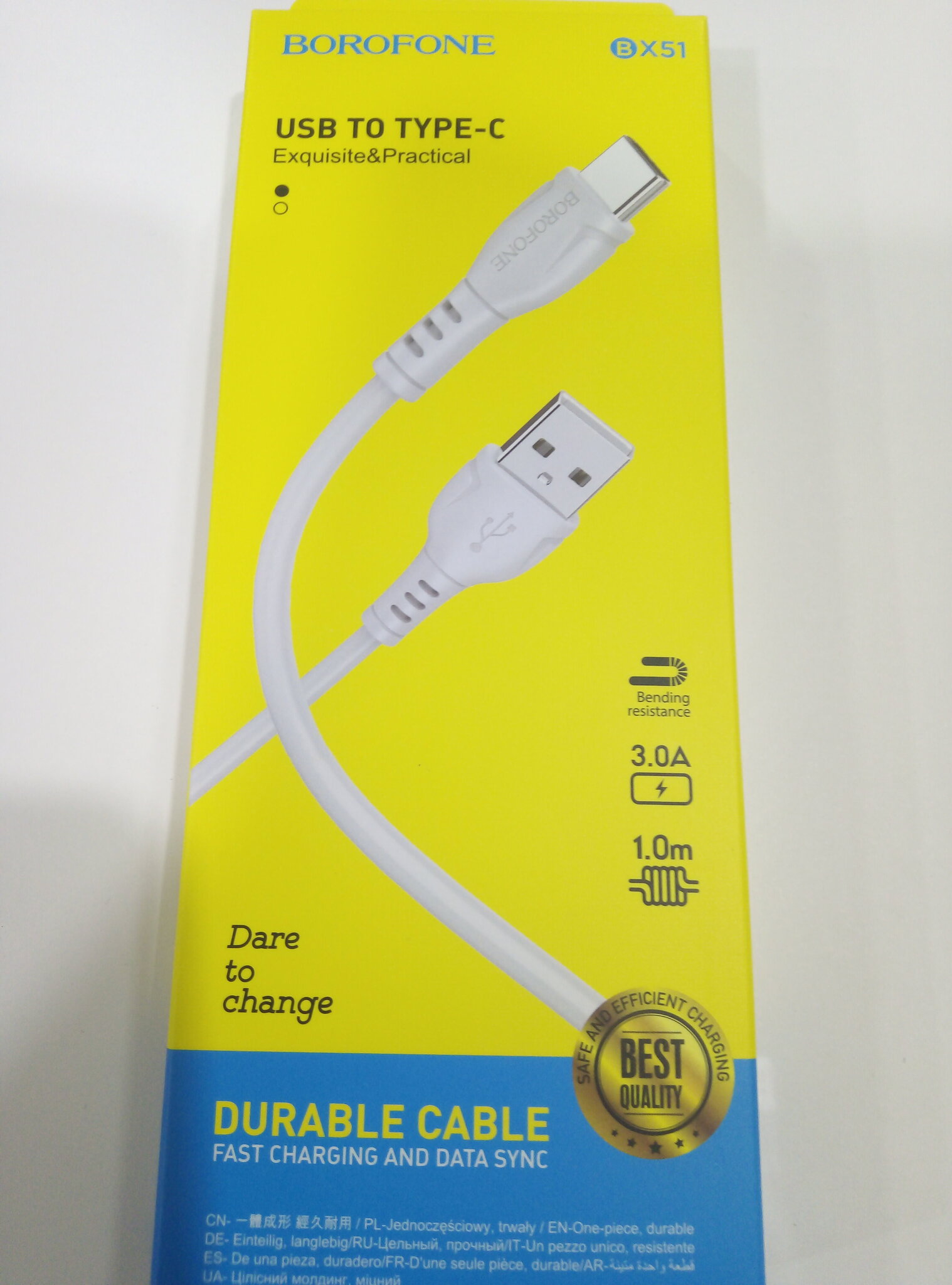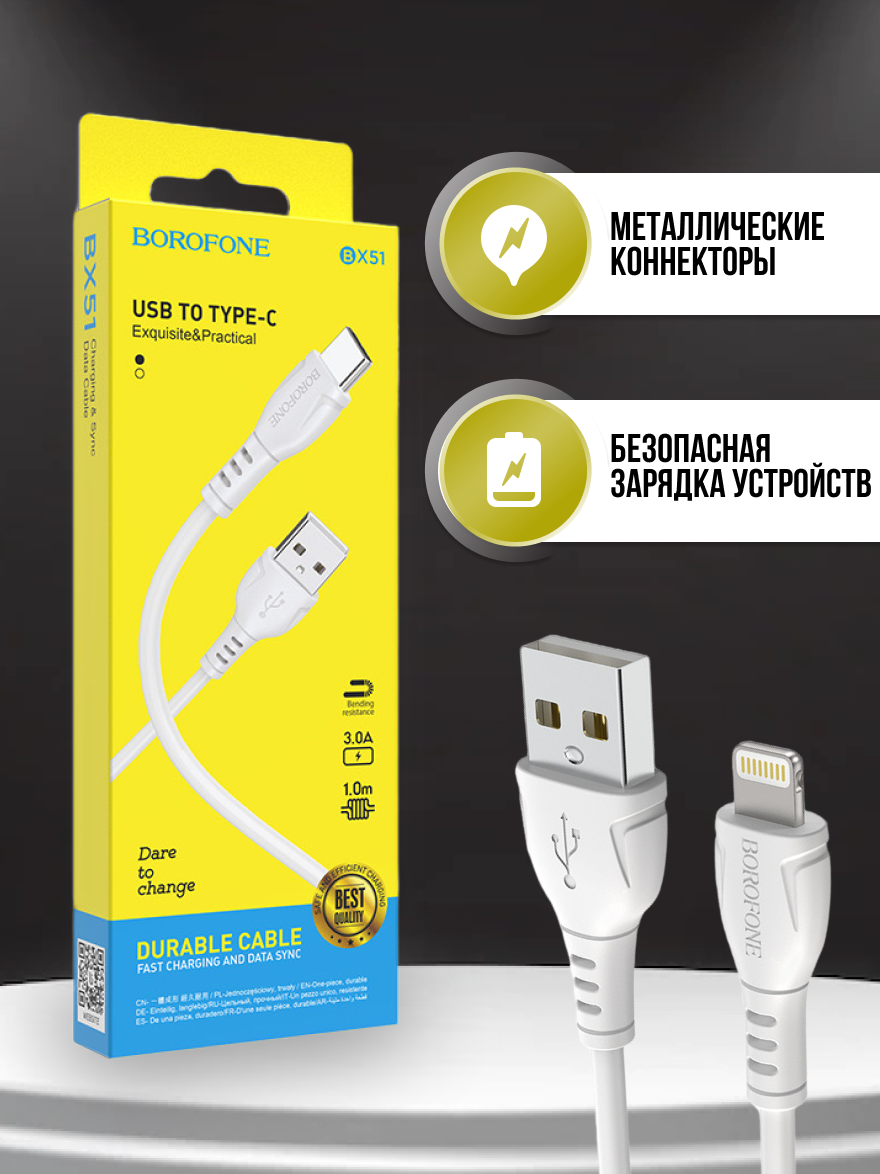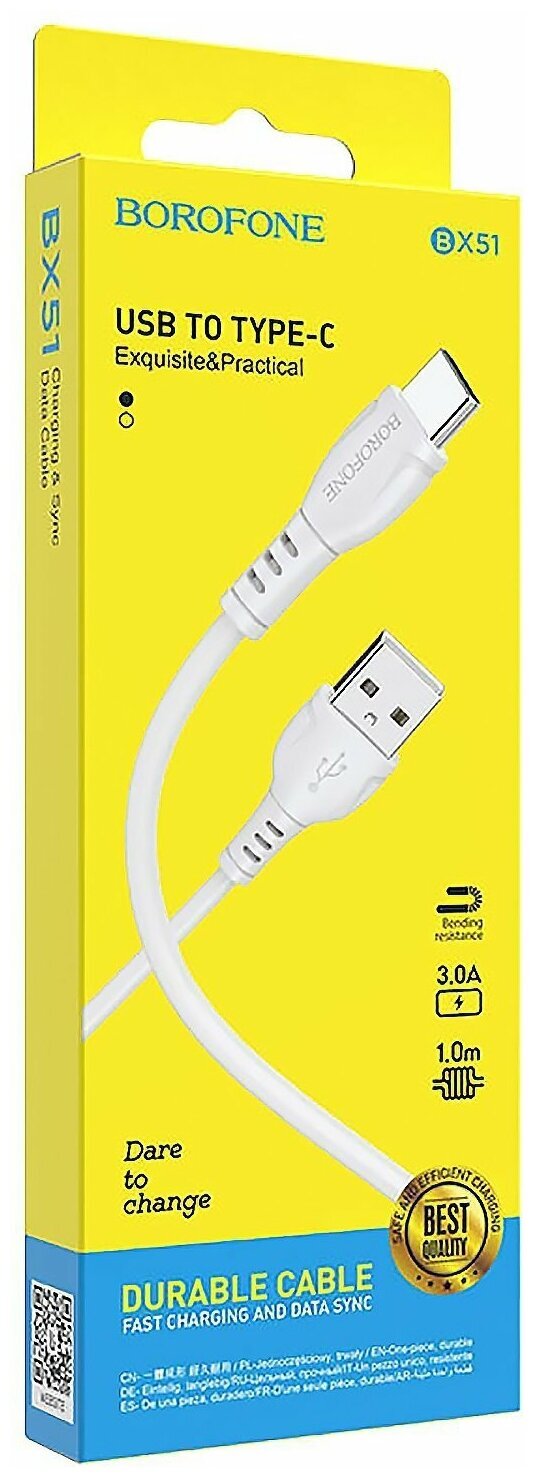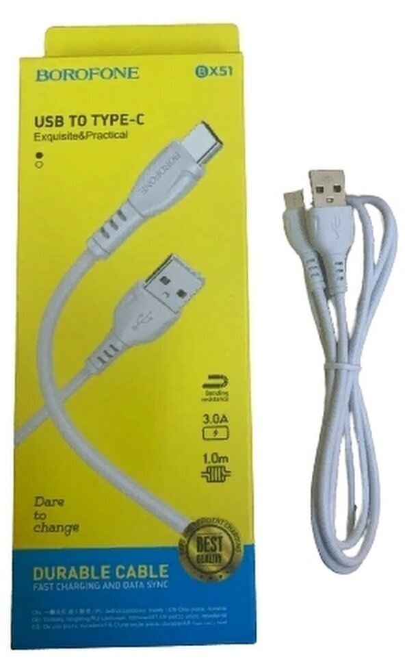 Кабель Type-C BOROFONE BX51 3.0A, 1м. белый