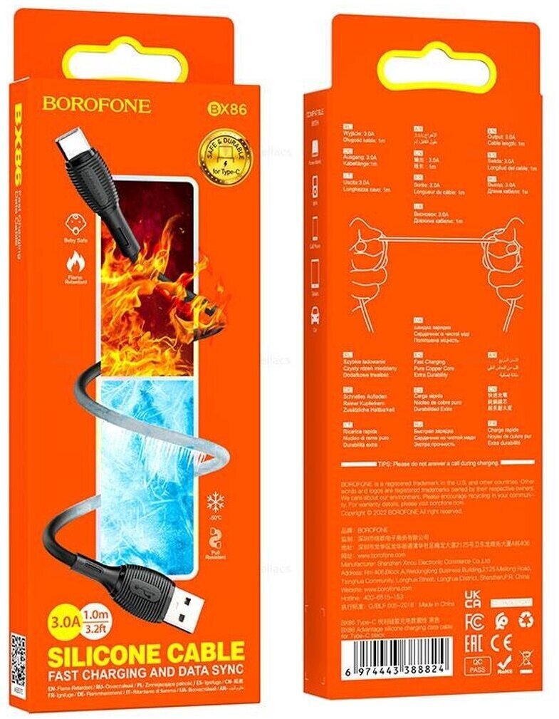 Кабель Type-C BOROFONE BX86 1м, 3.0A силиконовый черный