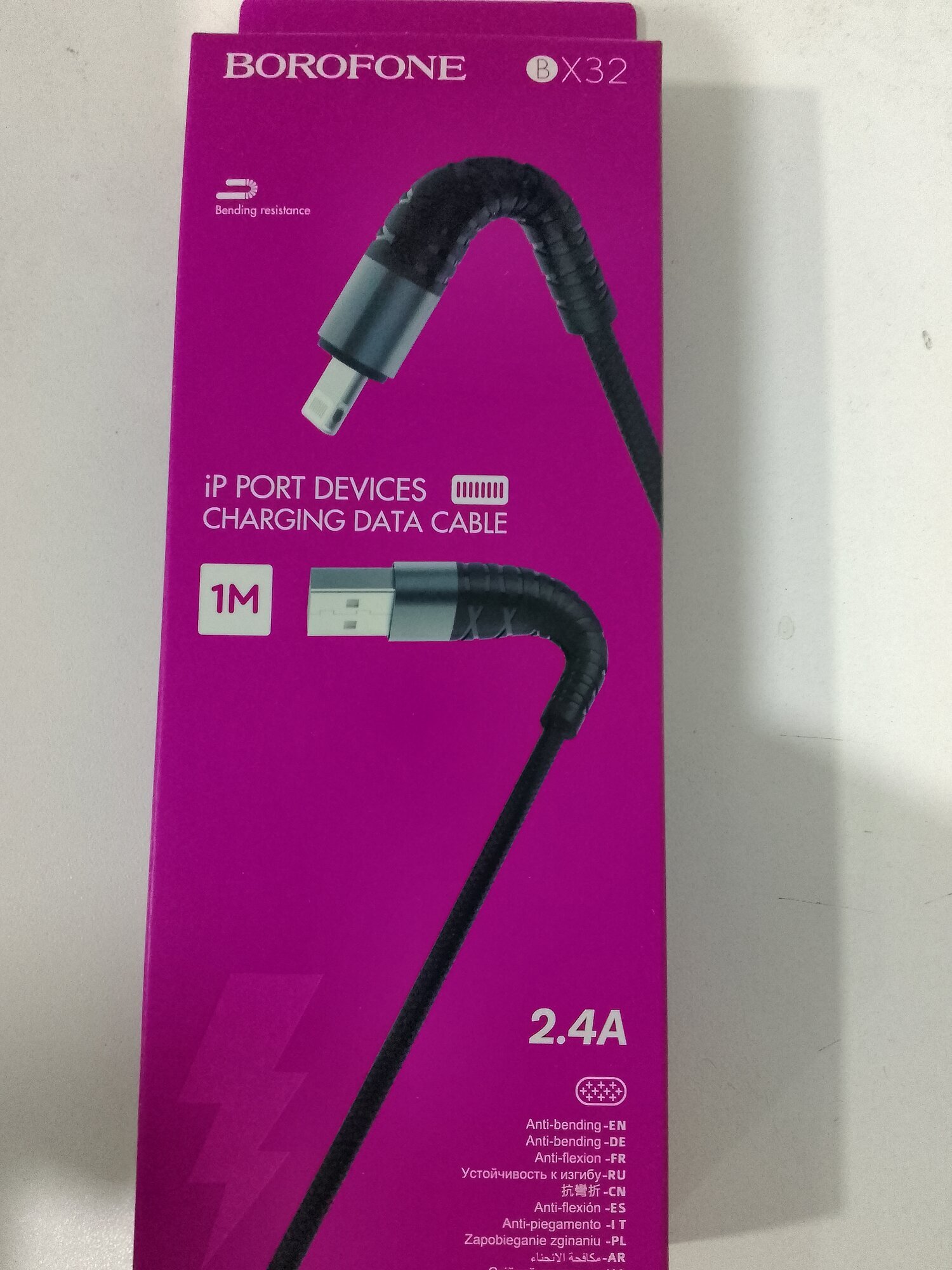Кабель USB - 8 pin BOROFONE BX32 1м 2.4А, нейлон черный (коробка)