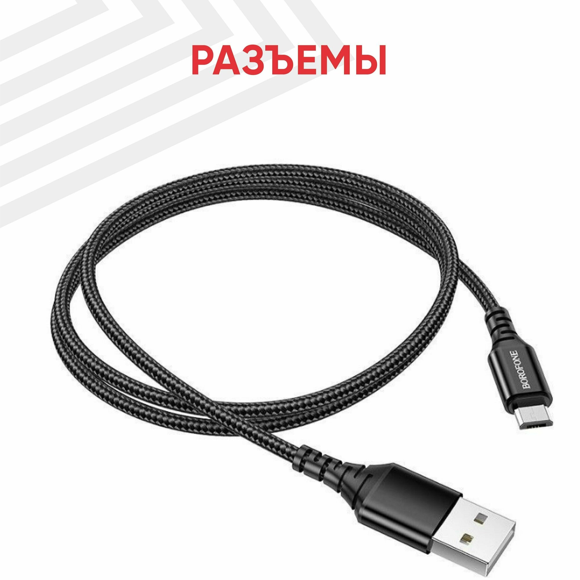 Кабель USB - микро USB Borofone BX116, 1.м, 2.4A, нейлон, цвет: черный (коробка)