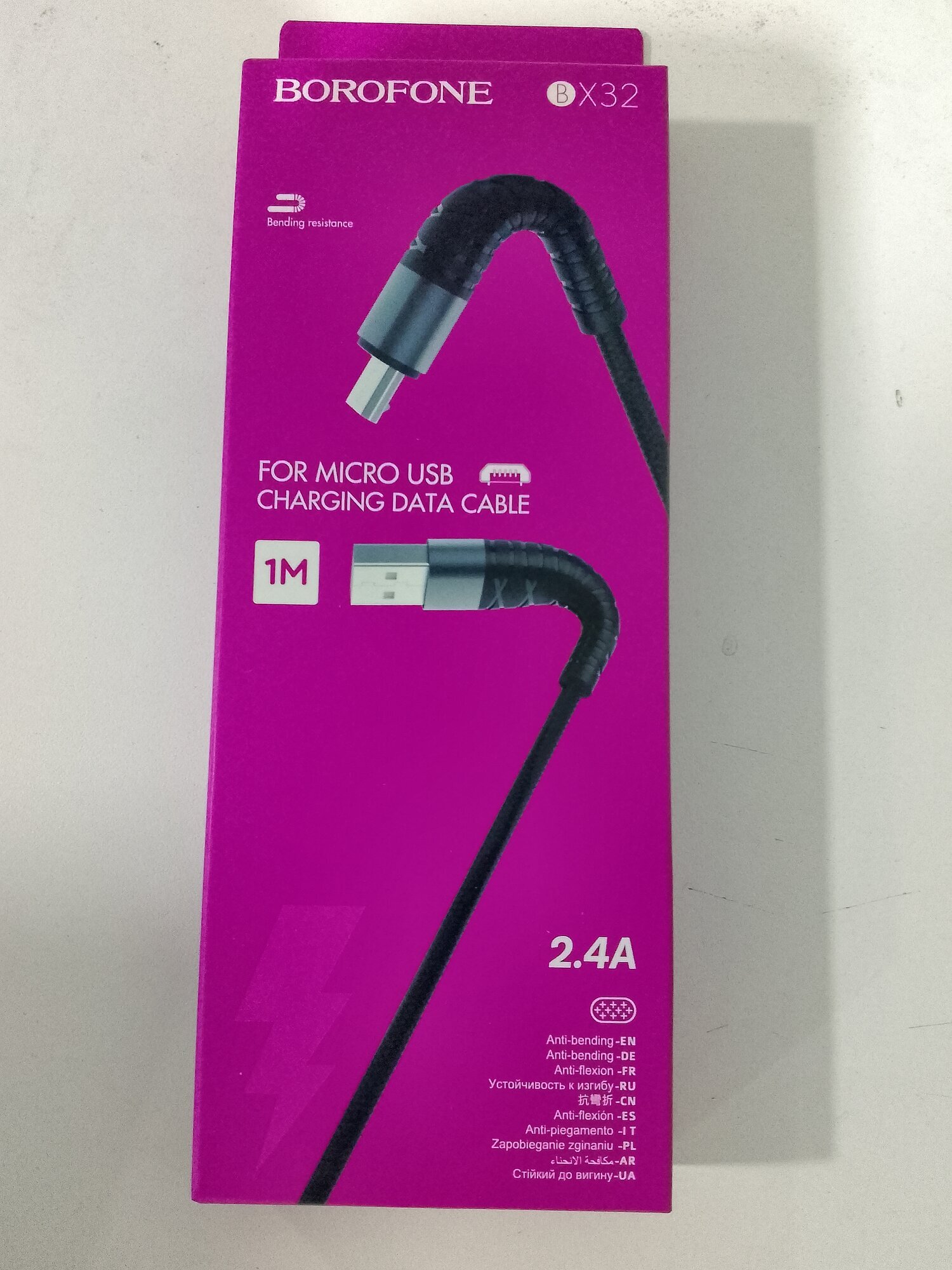 Кабель USB - микро USB BOROFONE BX32 1м 2.4А, нейлон черный (коробка)