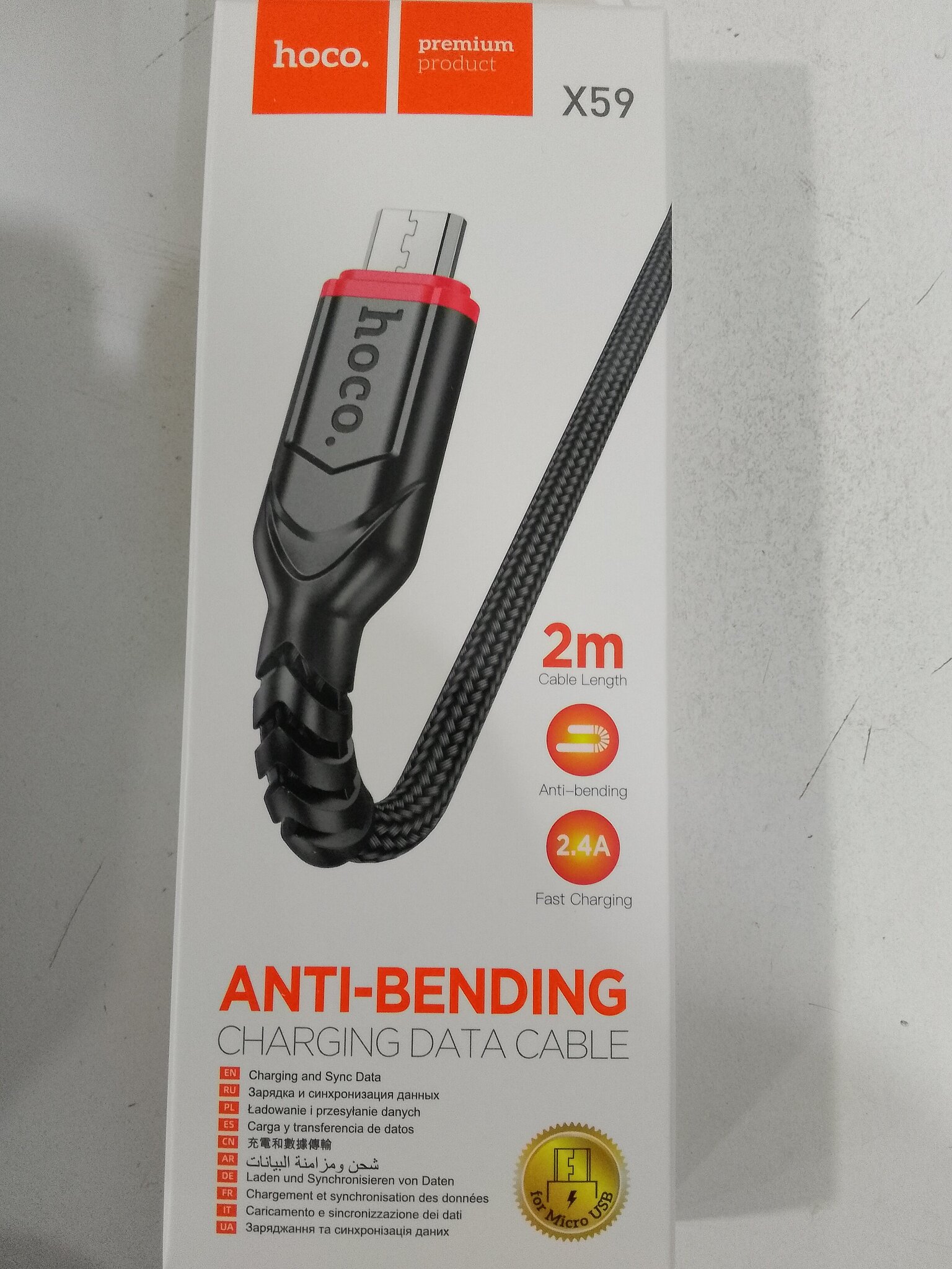 Кабель USB - микро USB HOCO X59 Victory, 2.0м, круглый, 2.4A, нейлон, черный