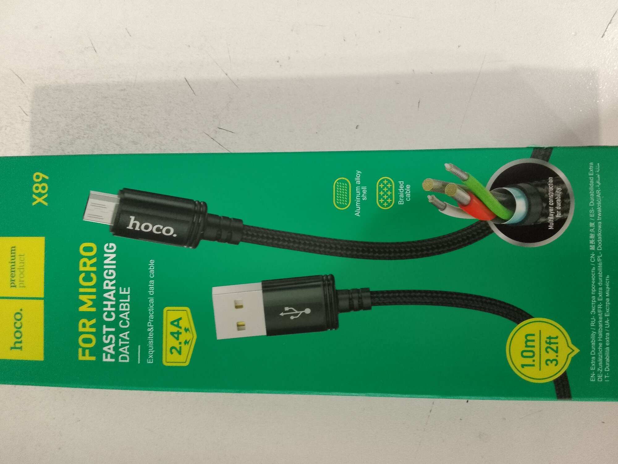 Кабель USB - микро USB HOCO X89 Wind, 1м, 2.4A, ткань, цвет: чёрный