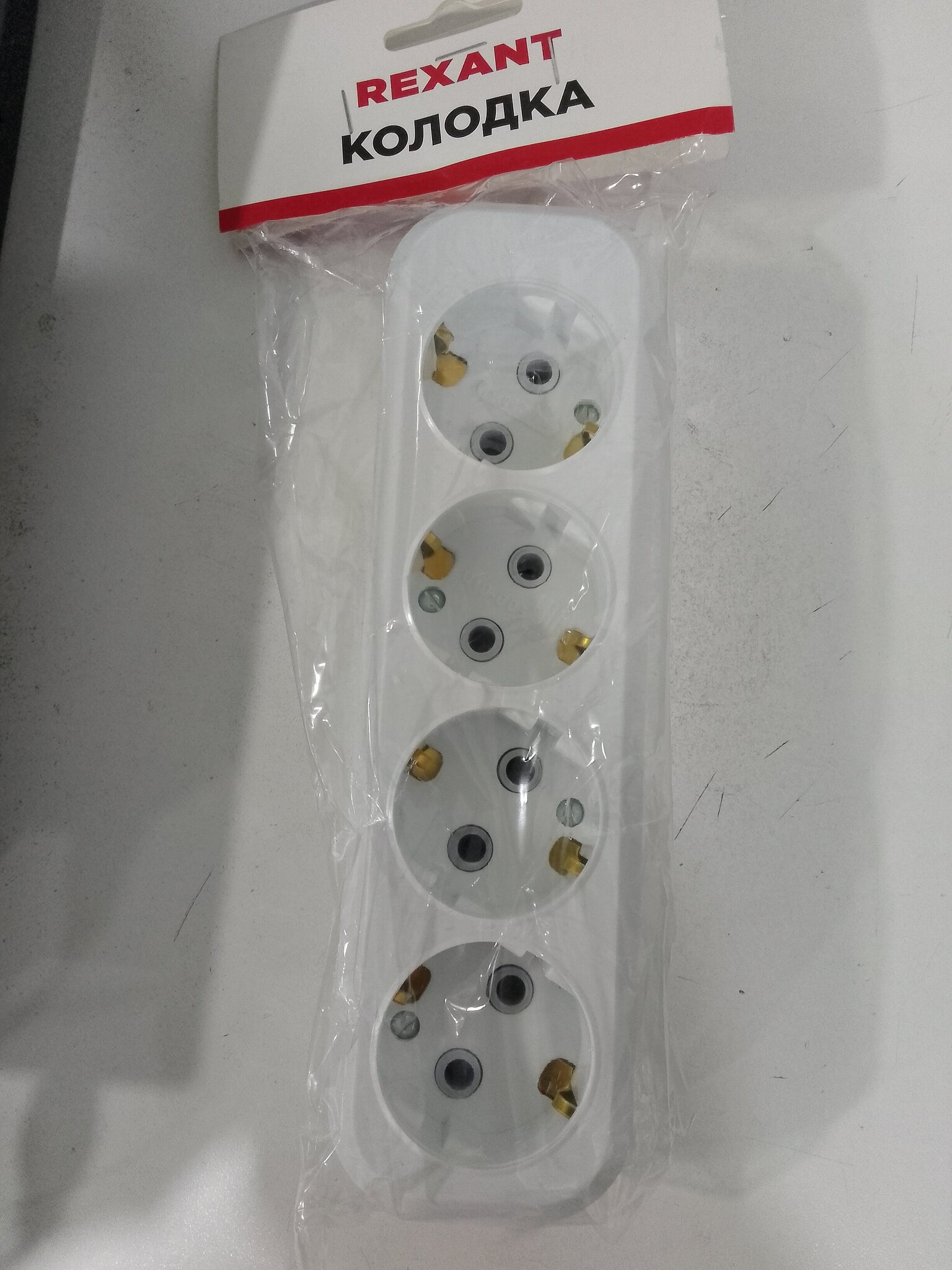 Колодка сетевая 4 гнезда, с землей, 16А 250В