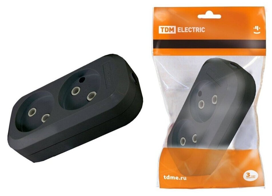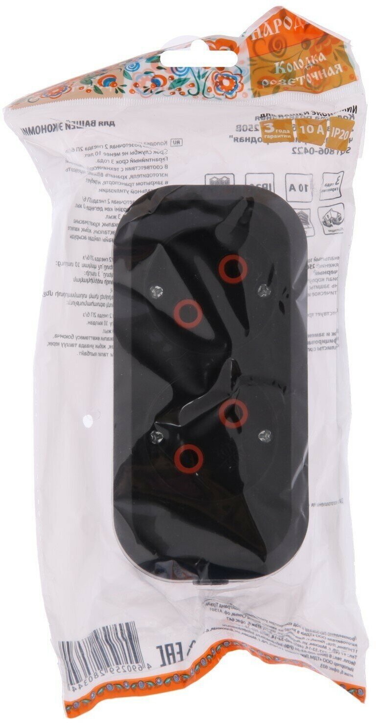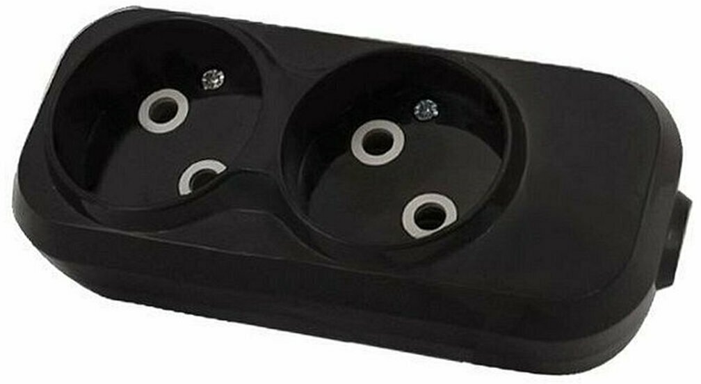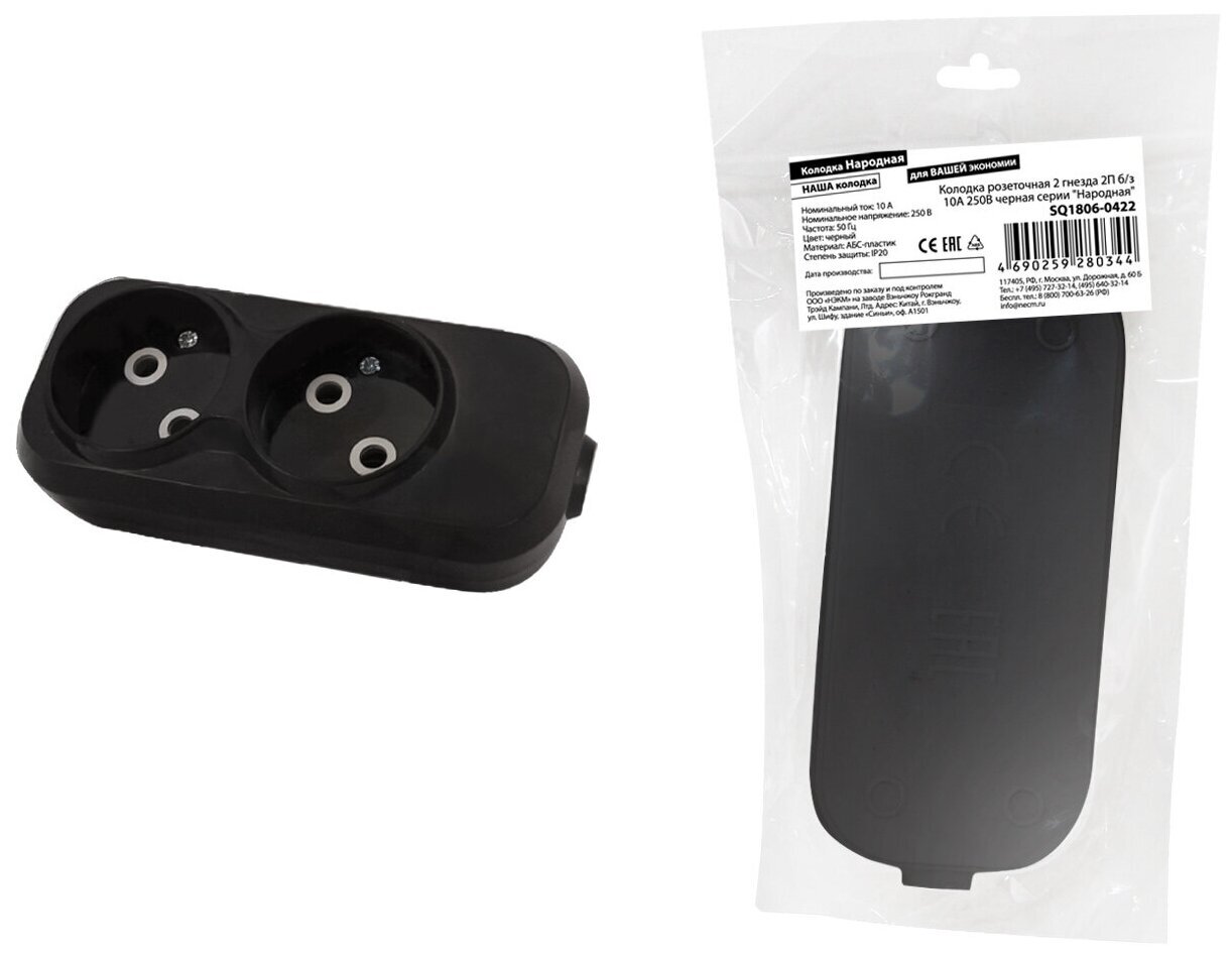Колодка розеточная 2 гнезда 2П б/з 10А 250В черная серии "Народная"