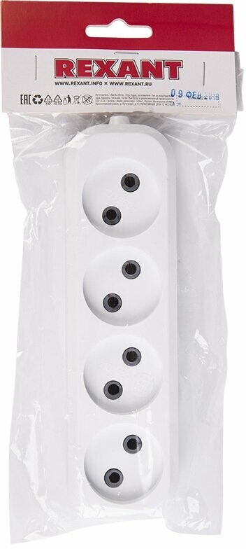 Колодка розеточная 4 гнезда без заземления 1300 Вт 6А REXANT
