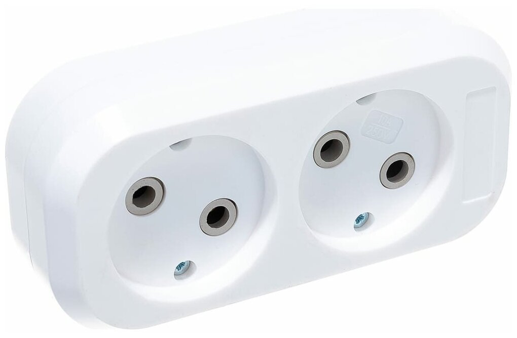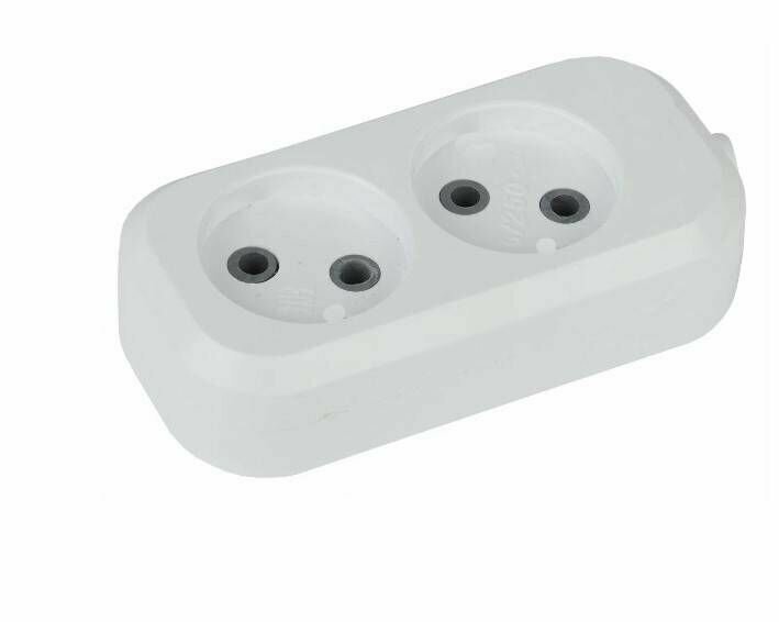 Колодка сетевая для удлинителя 2 гнезда без земли 10А 250В белая