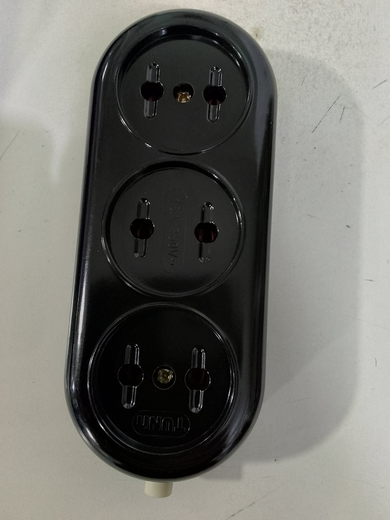 Колодка сетевая для удлинителя 3 гнезда без земли 16А 250В №313, карболитовая, черная.