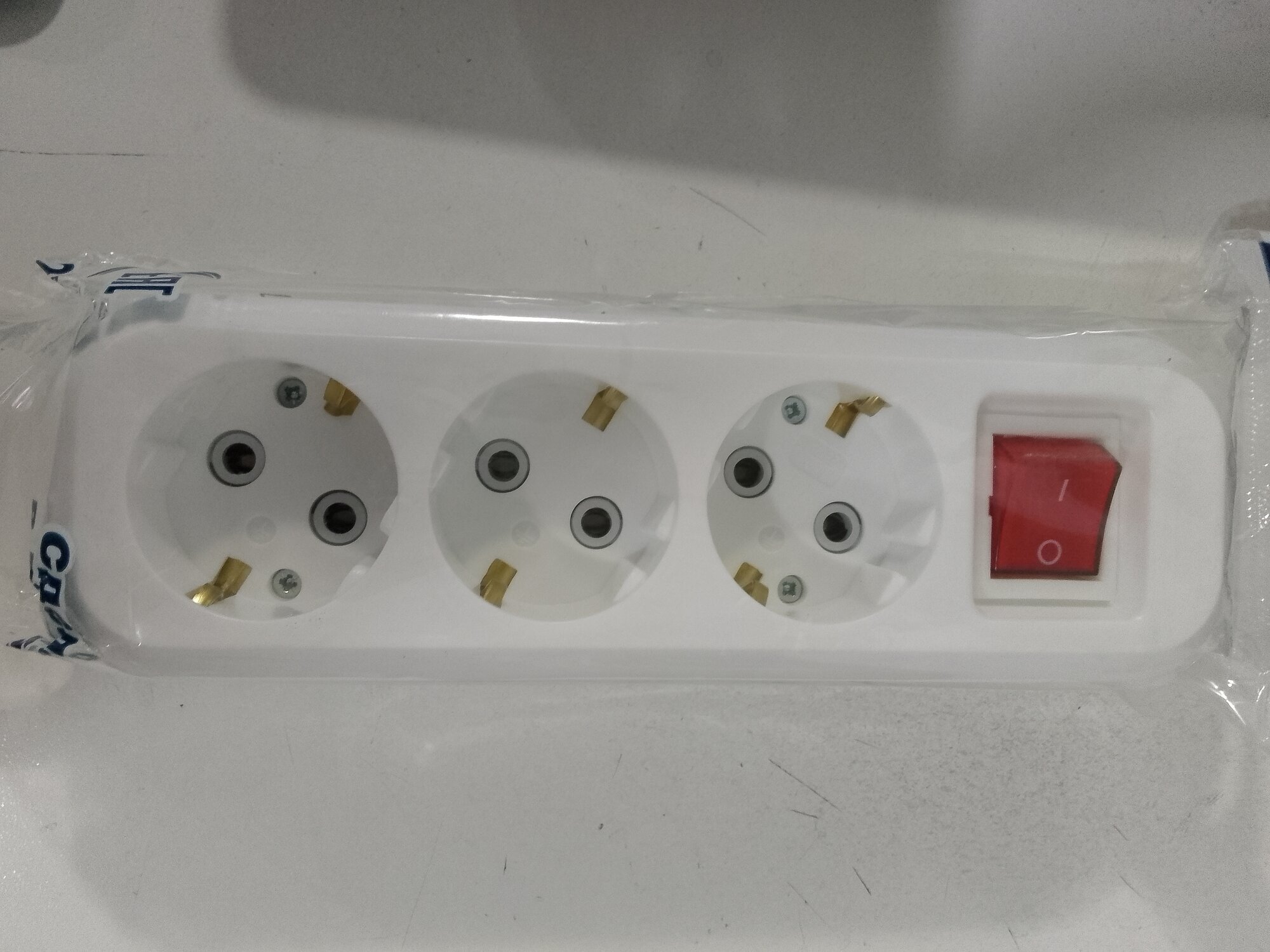 Колодка сетевая для удлинителя 3 гнезда с землей и выключателем 250В белая