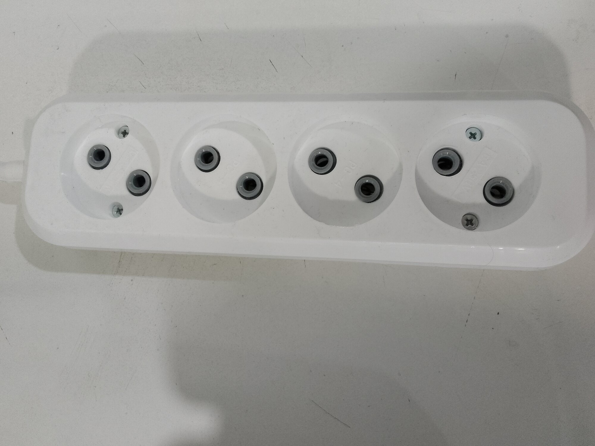 Колодка сетевая для удлинителя 4 гнезда без земли 10А 250В белая