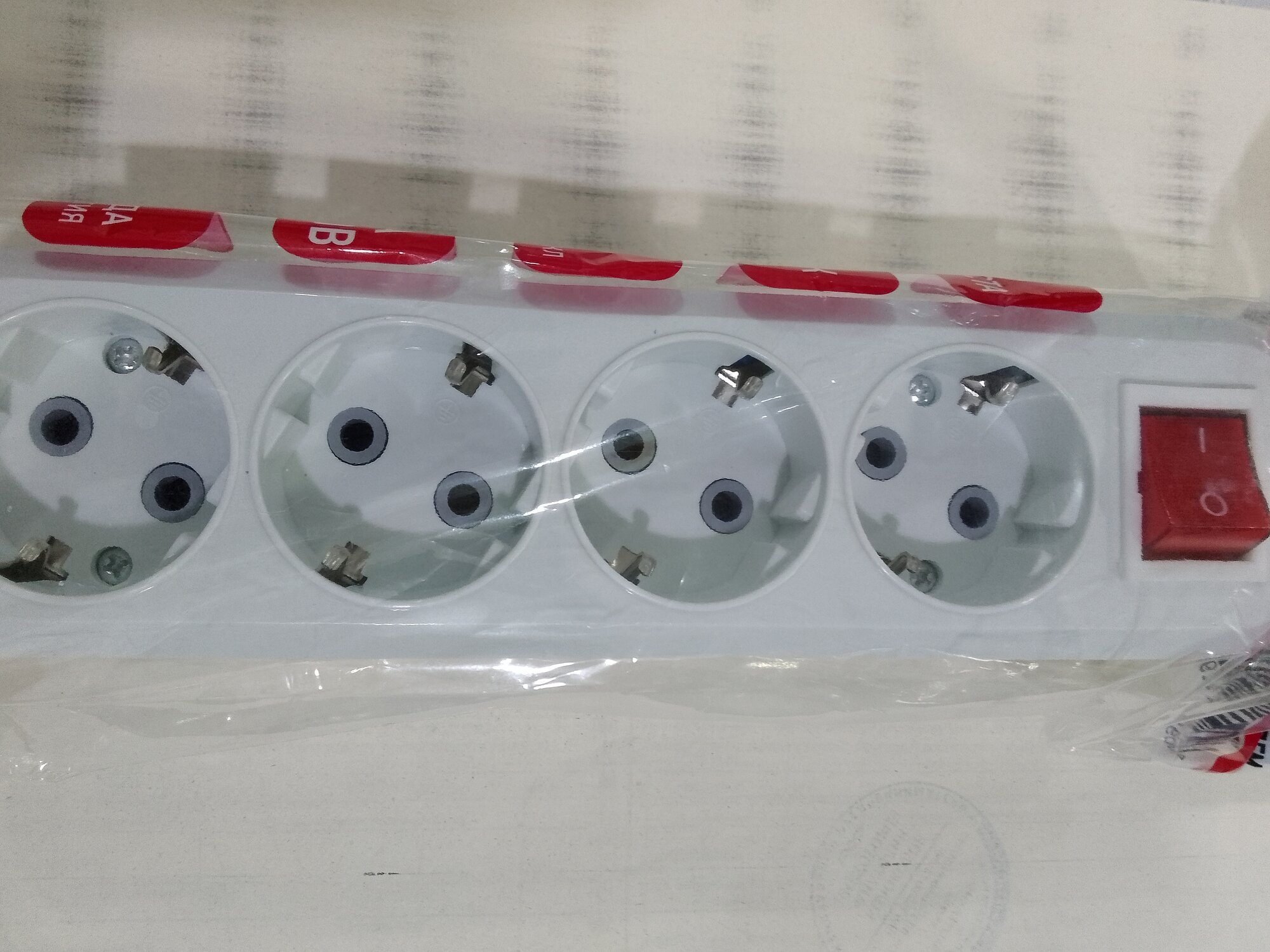 Колодка сетевая 4 гнезда с землей c выключателем 16А 250В белая