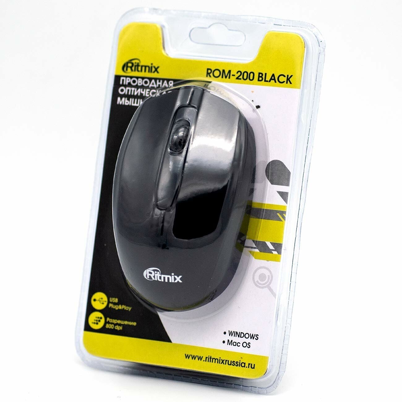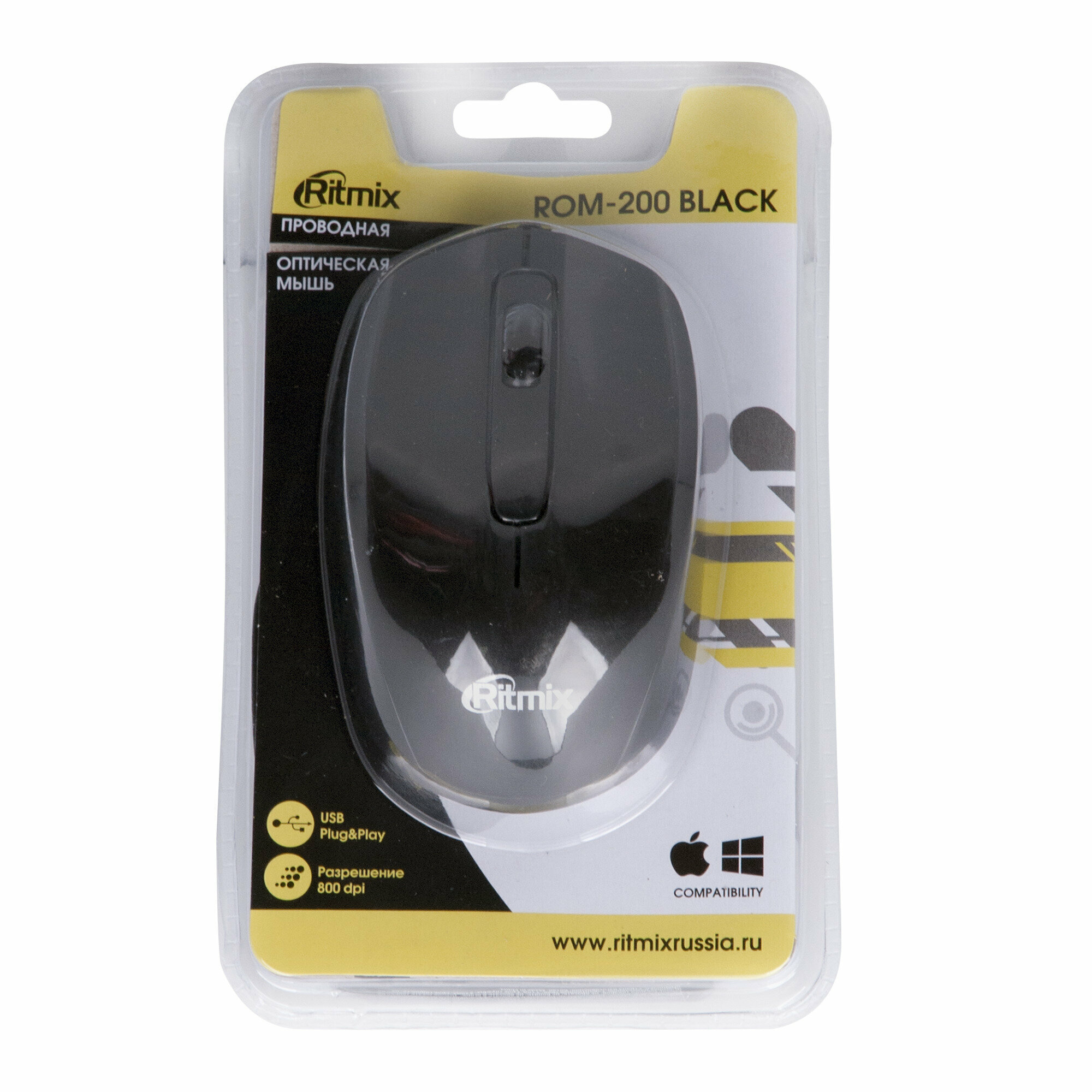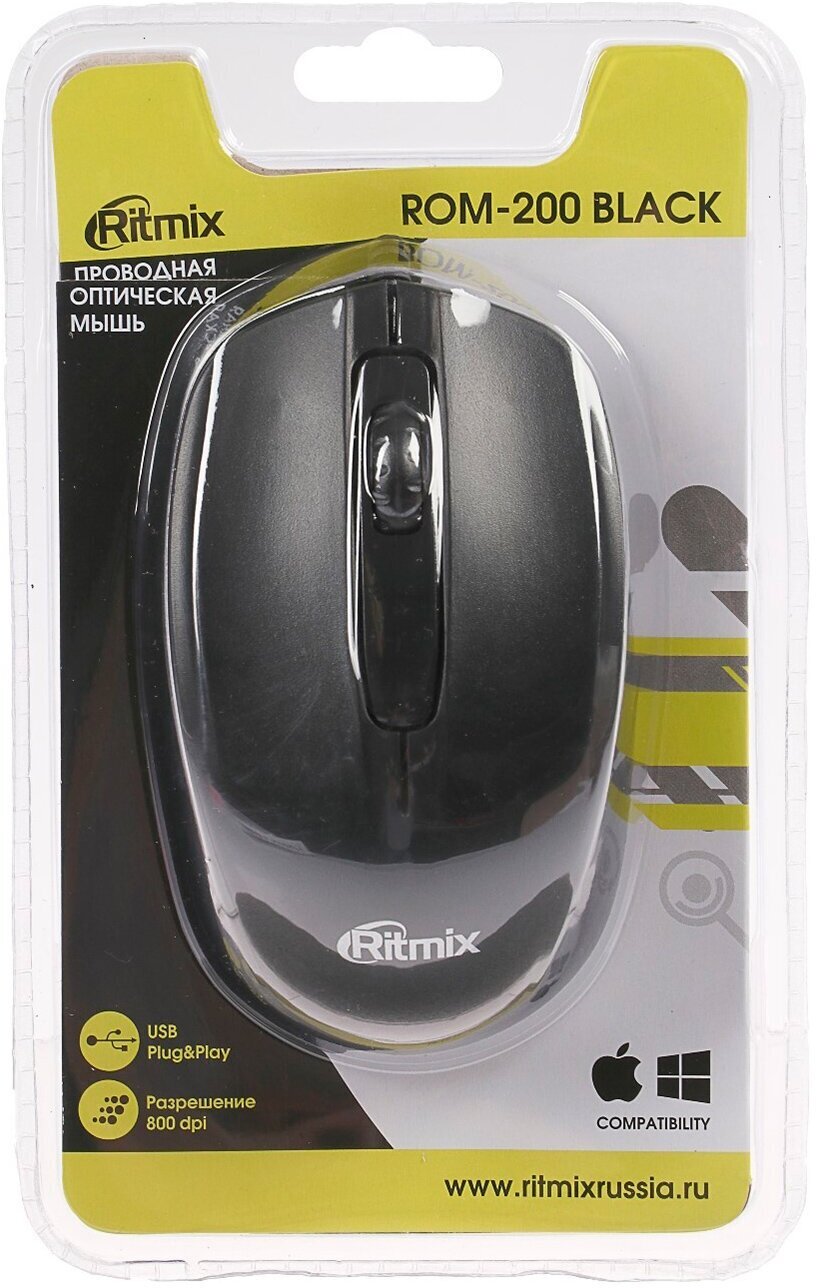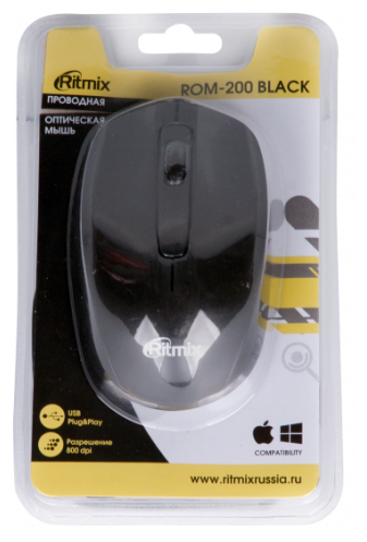 Компьютерная Мышь проводная RITMIX ROM-200, черная, USB.