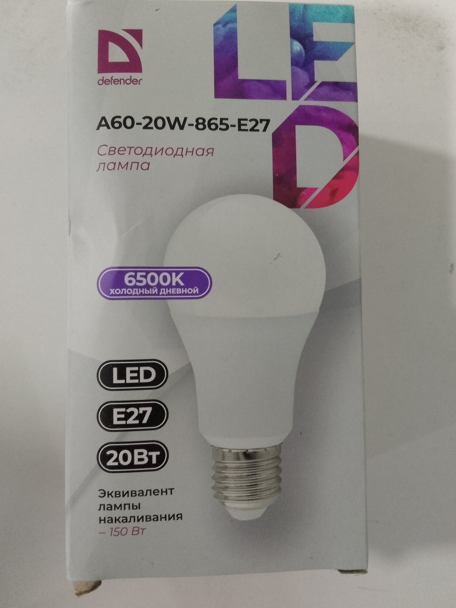 Лампа светодиодная DEFENDER A60 20Вт E27 6500К холодный свет