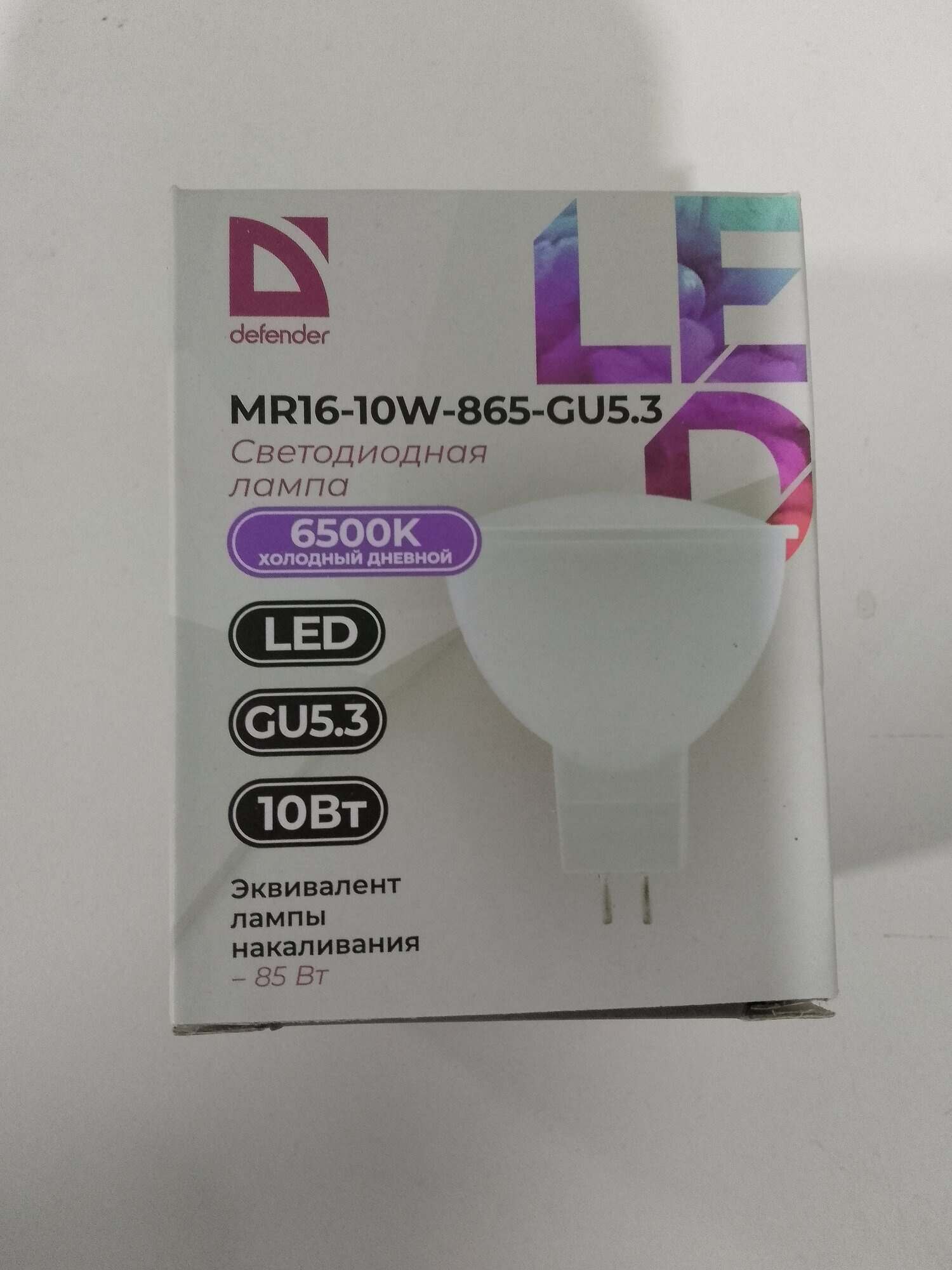 Лампа светодиодная DEFENDER MR16 10Вт GU5.3 6500К софит холодный дневной