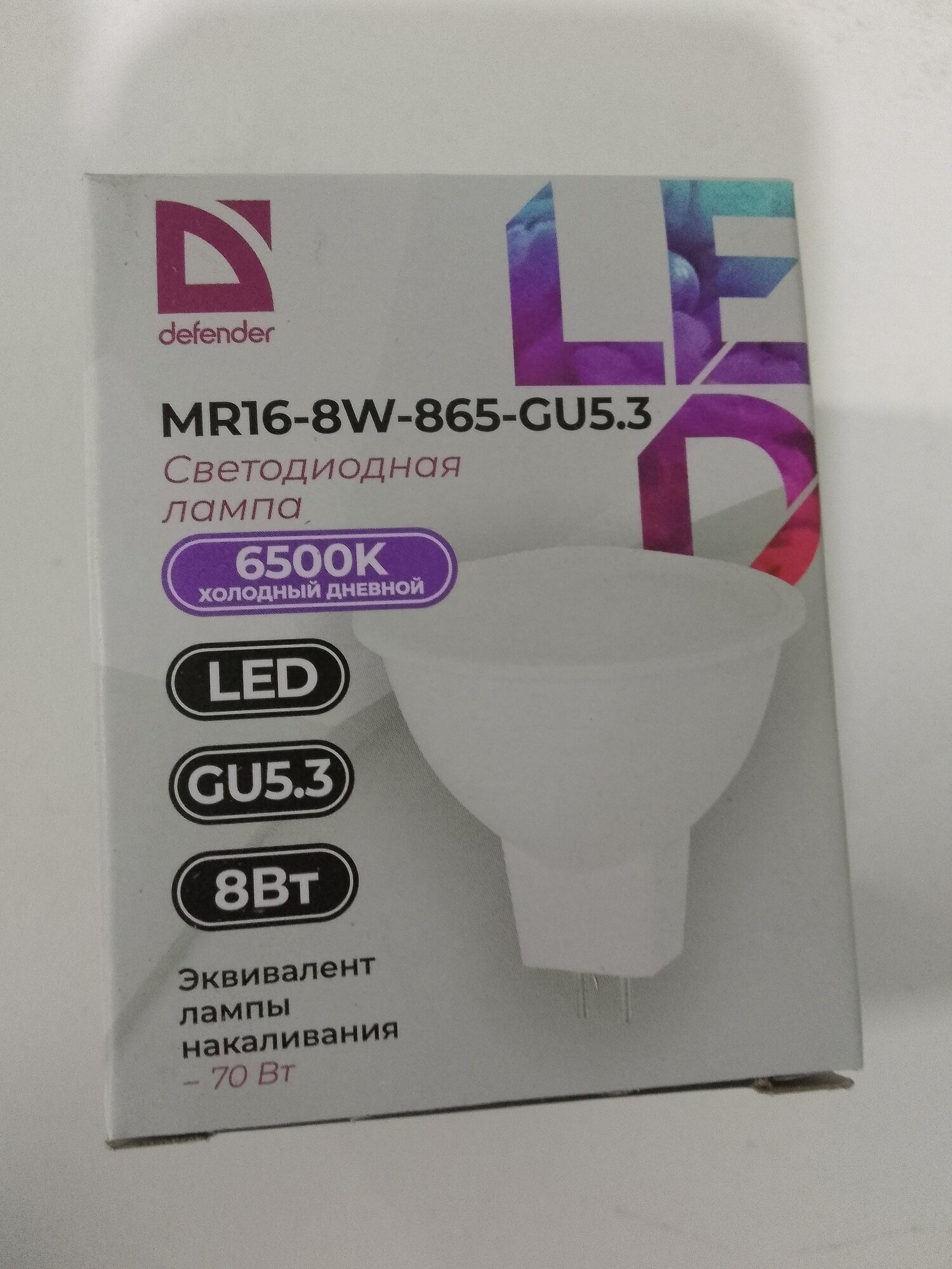 Лампа светодиодная DEFENDER MR16 8Вт GU5.3 6500К софит холодный дневной