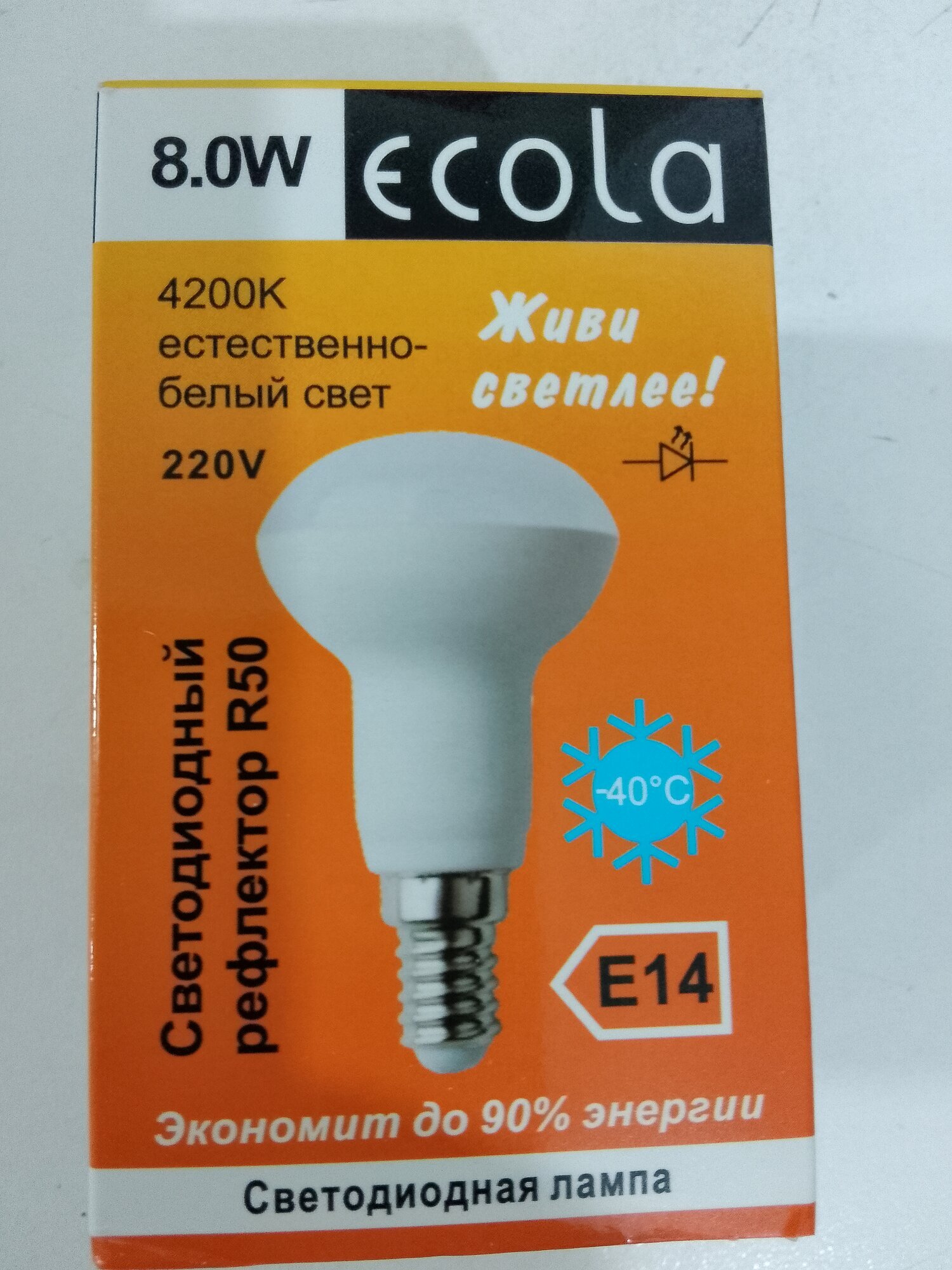 Лампа светодиодная ECOLA Reflector R50 8,0W 220V E14 4200K нейтральный свет (бело-желтый).