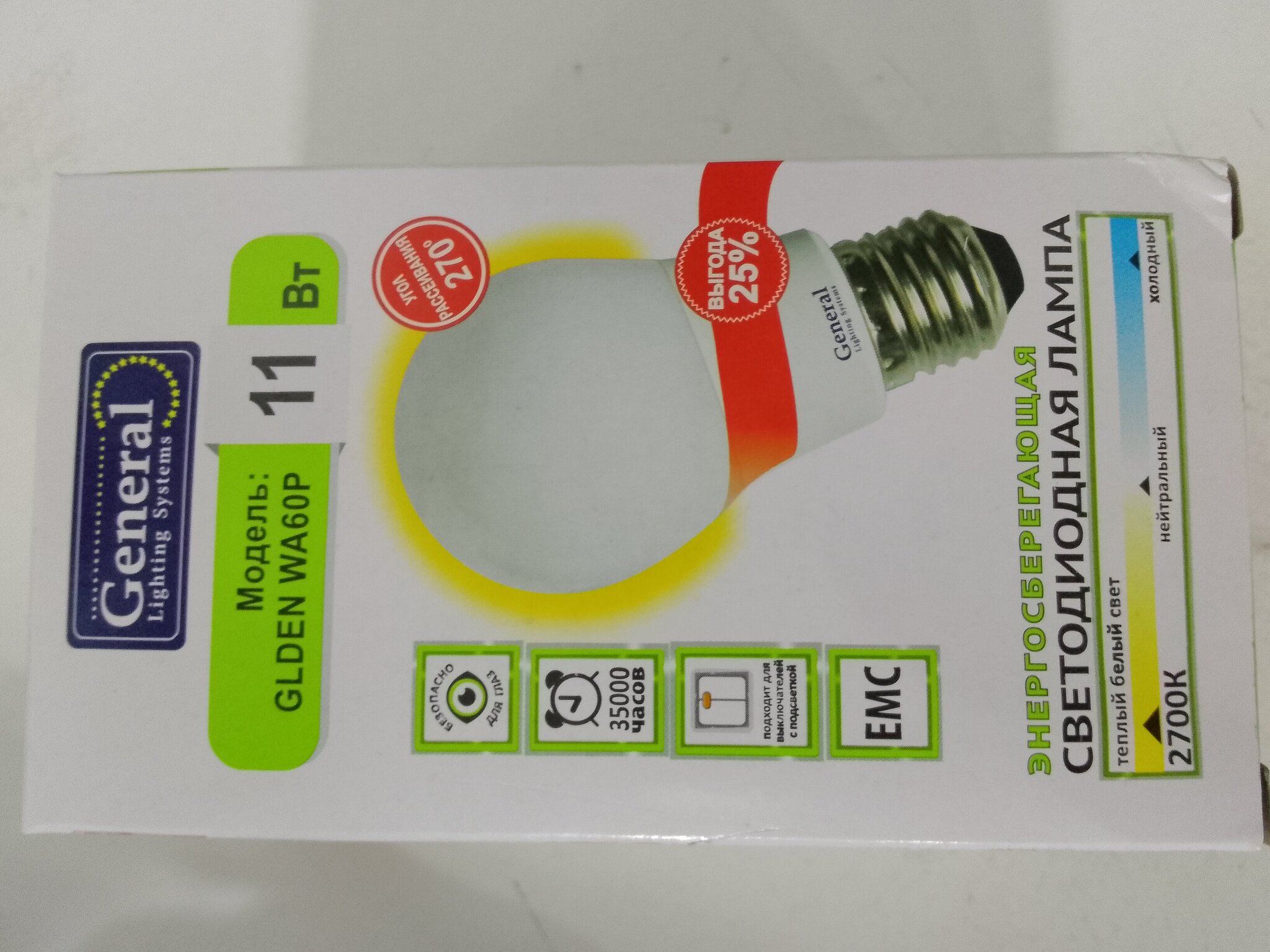 Лампа светодиодная General A60 E27 11W"(630lm) пласт/алюм ЛОН GLDEN-WA60P-11-230-E27-2700