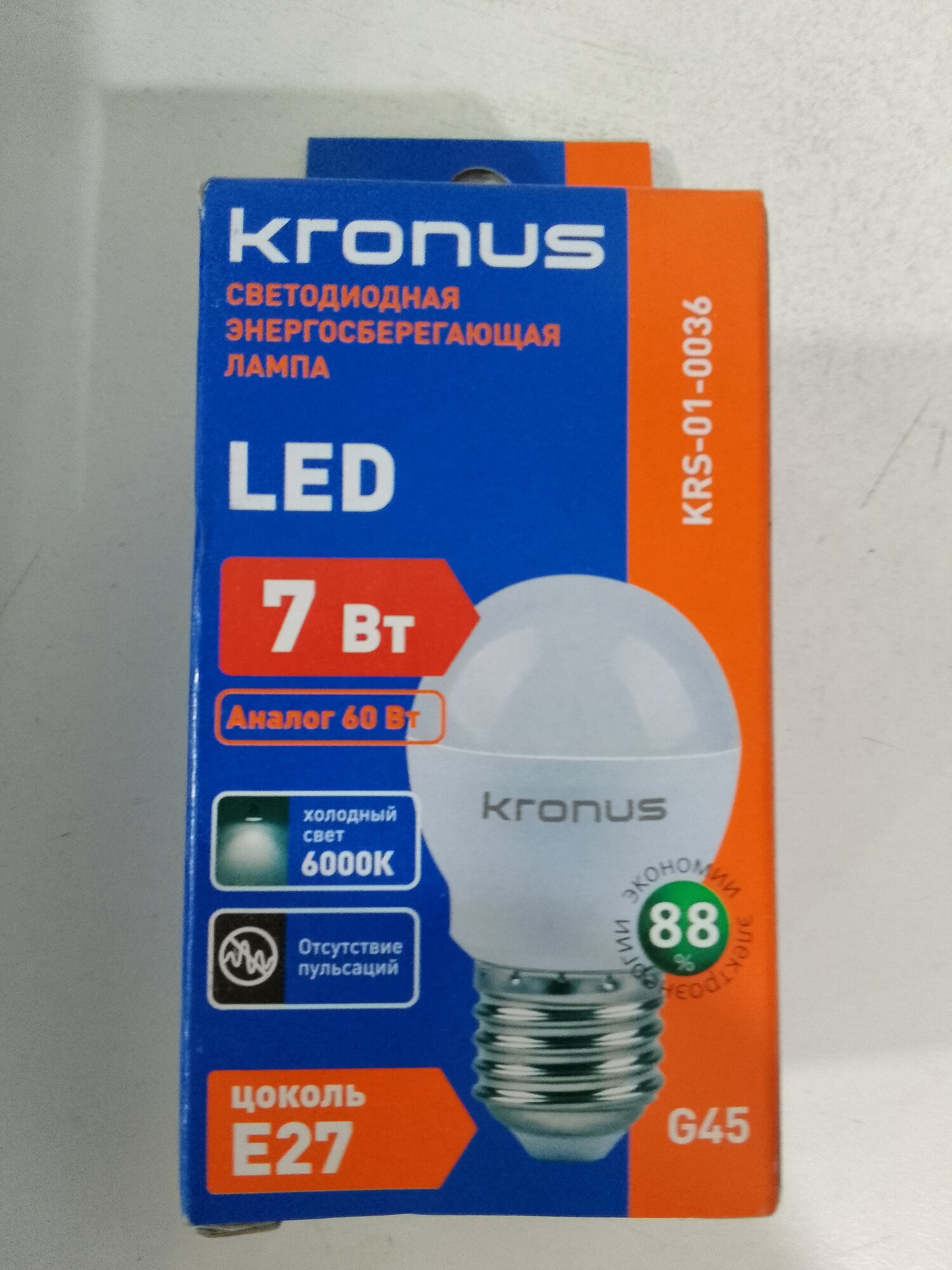 Лампа светодиодная KRONUS G45 (мини шар) 7Вт 6000K E27 (холодный свет)