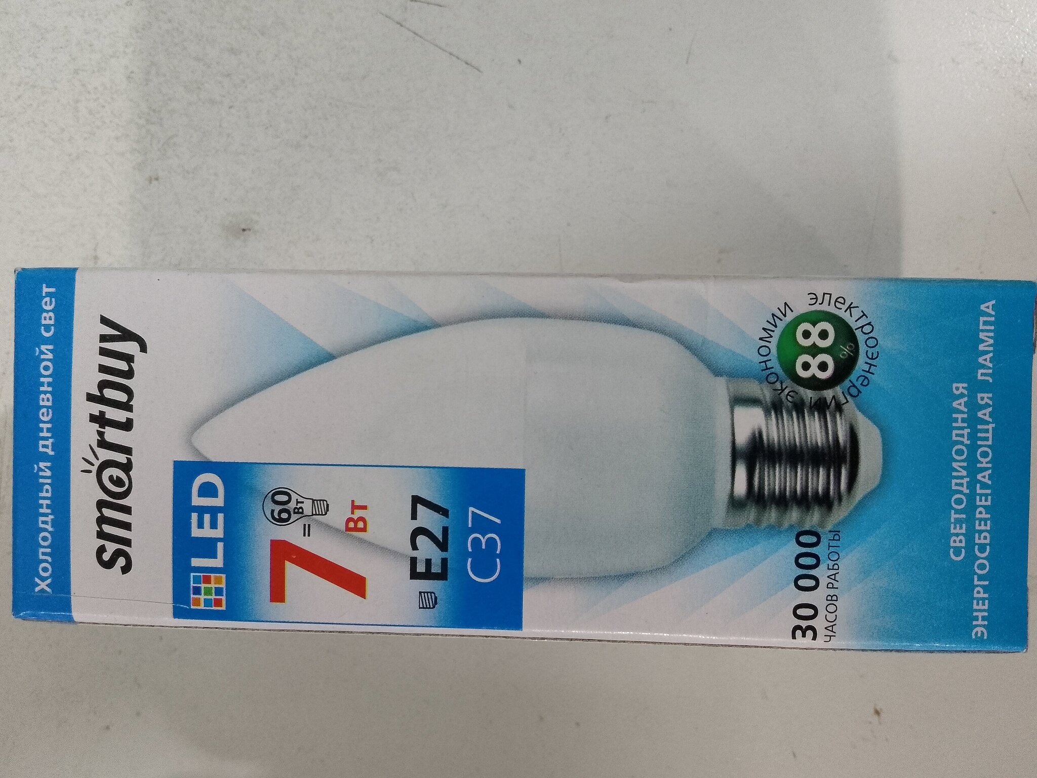 Лампа светодиодная SMARTBUY C37 7Вт 220V 6000K E27 (свеча, холодный свет)