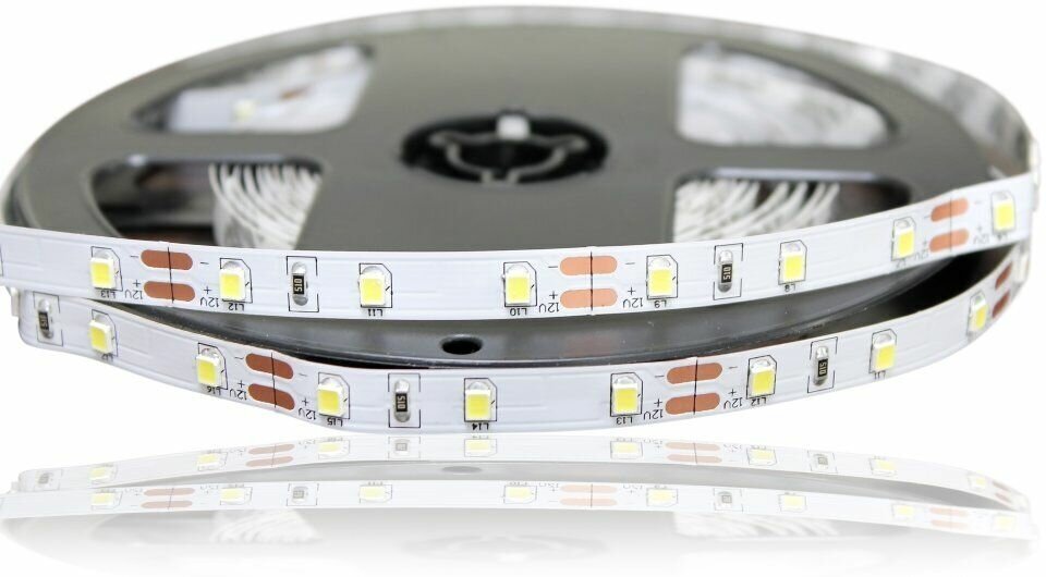 Лента светодиодная, 4.8Вт, 60 диодов на метр, 12V, IP20, комплект 5м, 4500к нейтральный (бело-желтый) цвет.