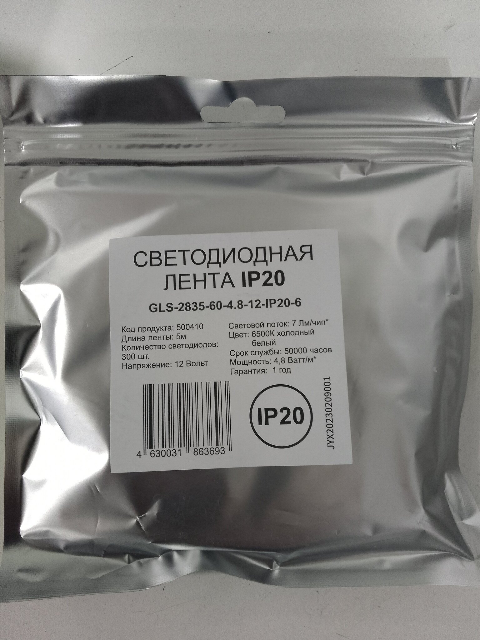 Лента светодиодная GLS-2835-60-4.8-12-IP20-6500к (5м)