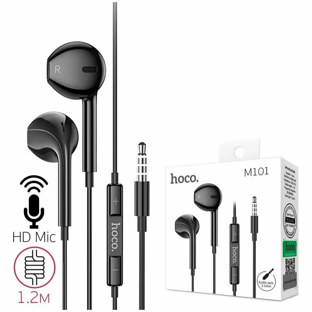 Наушники вкладыши HOCO M101 черные - это проводные наушники, которые обеспечивают высокое качество звука благодаря динамической технологии и полуоткрытому акустическому оформлению. Максимальная воспроизводимая частота составляет 20000 Гц, что позволяет наслаждаться чистым и насыщенным звуком.