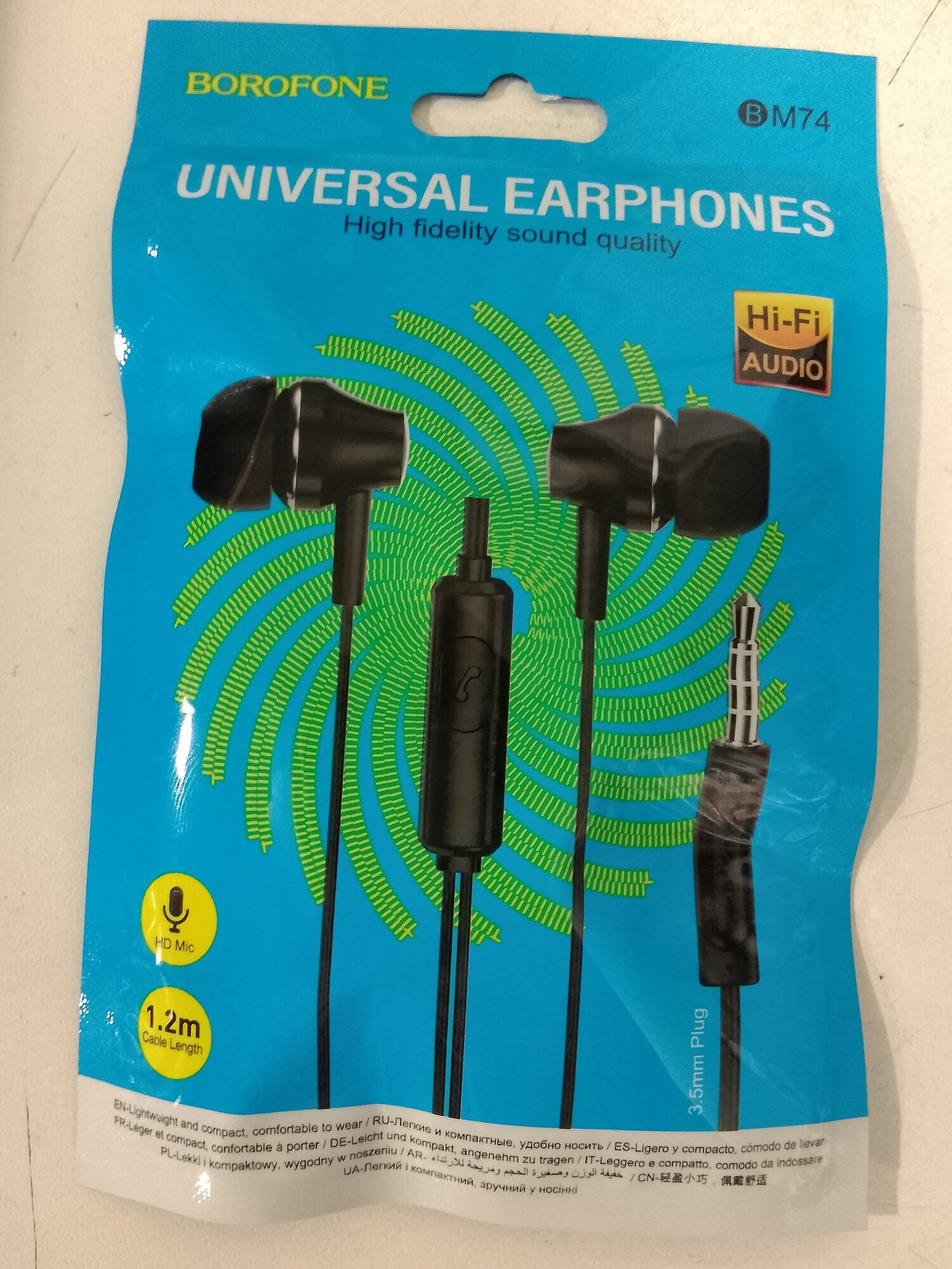 Наушники внутриканальные Borofone BM74 Ascending, пластик, микрофон, кнопка ответа, 1.2 м, чёрные