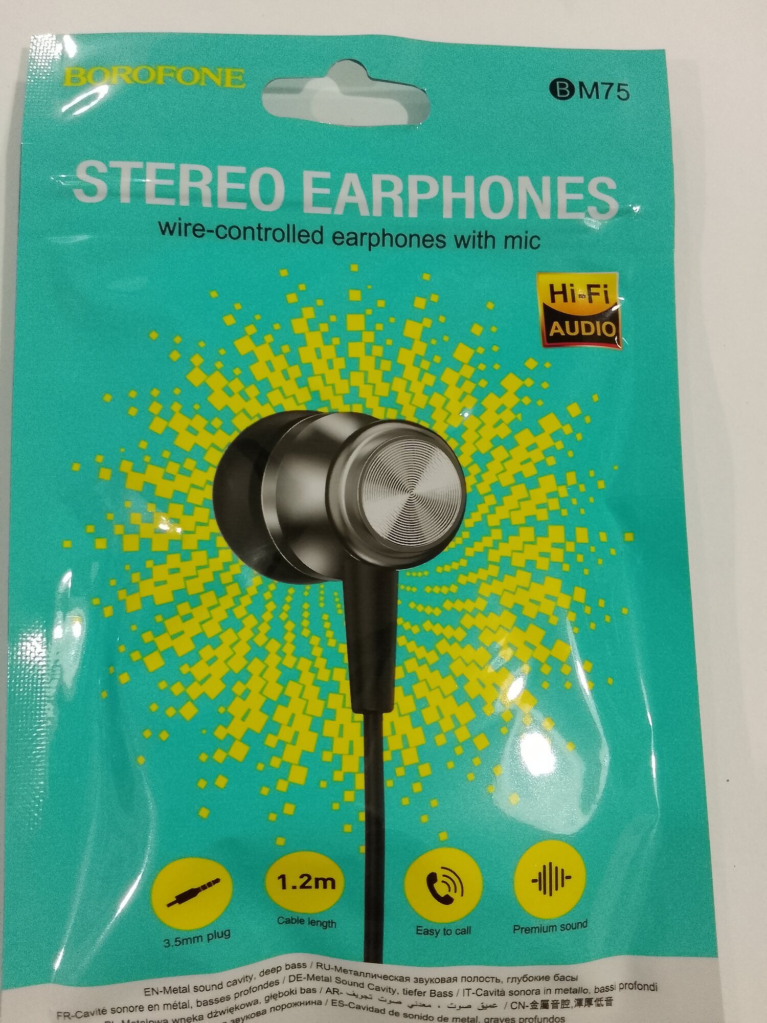Наушники внутриканальные Borofone BM75 Platinum, пластик, микрофон, кнопка ответа, 1.2 м, серые