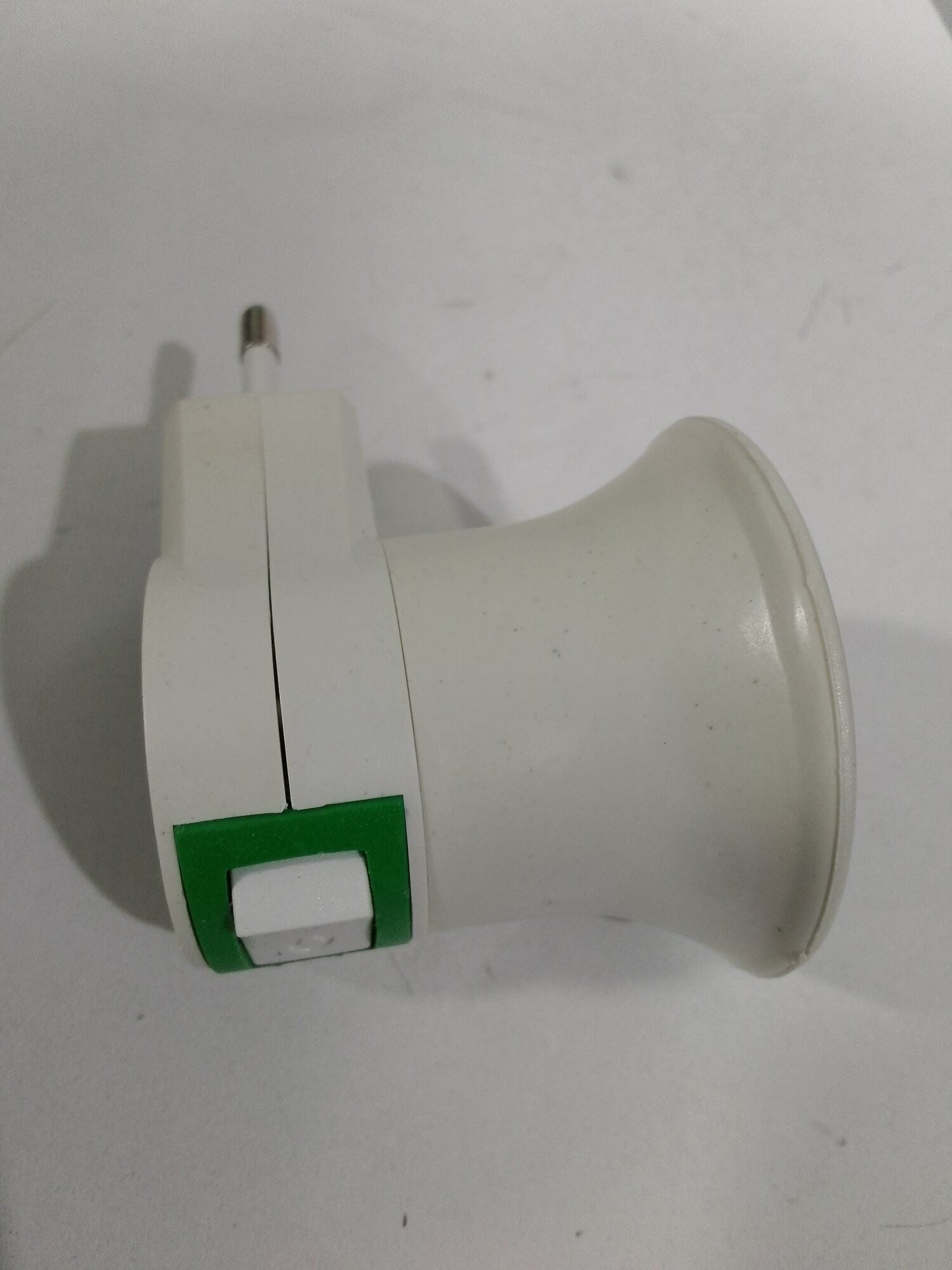 Патрон переходник Розетка - Е27 угловой с выкл., пластик, белый