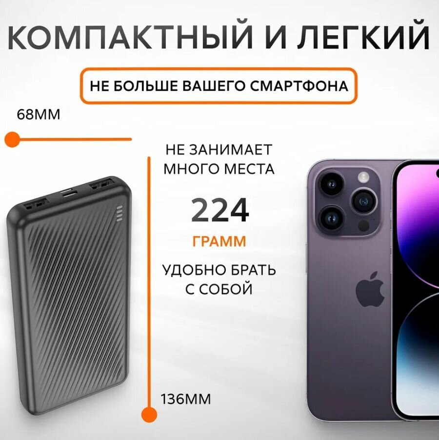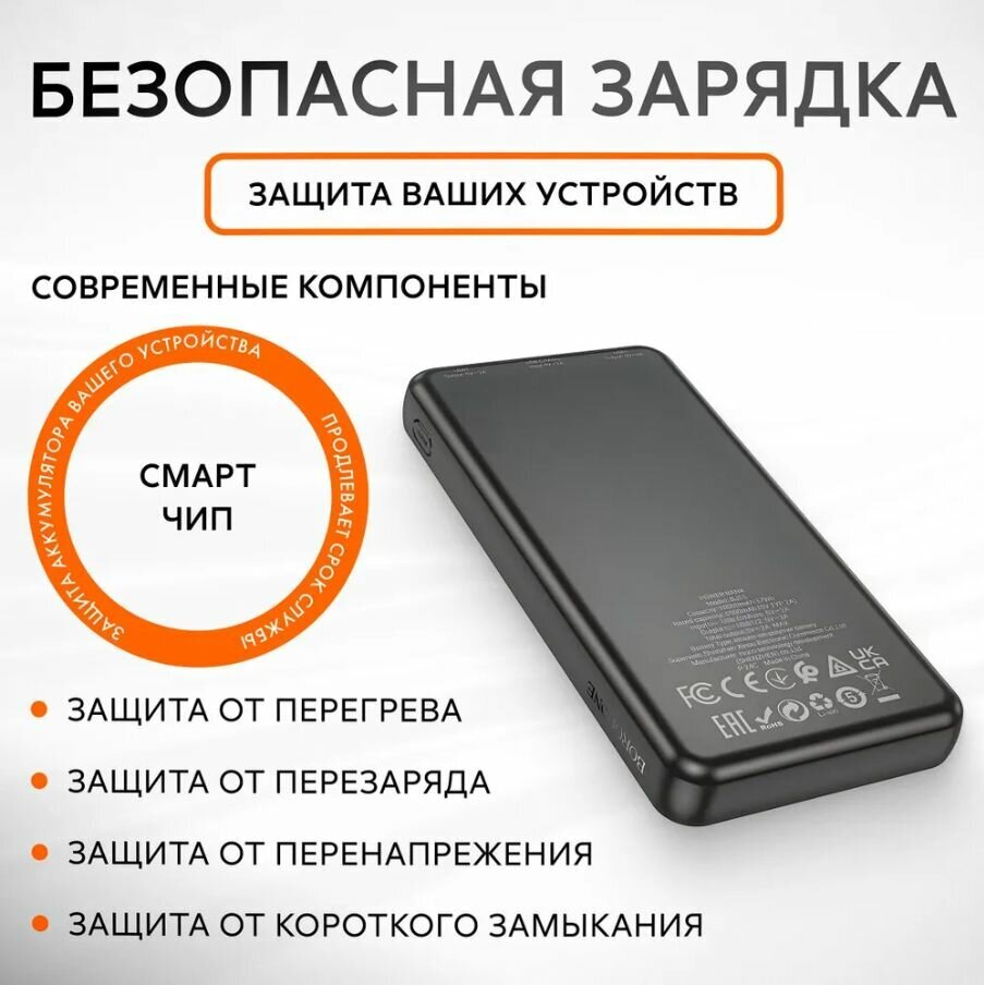 Представляем вам внешний аккумулятор Borofone BJ55 с ёмкостью 10000 mAh, который станет незаменимым помощником в повседневной жизни и путешествиях. Он обеспечивает надежную и быструю зарядку ваших устройств, делая его отличным выбором для активных пользователей. Этот пауэрбанк выполнен в стильном черном цвете и отличается компактными размерами, что позволяет легко носить его в кармане или сумке. Благодаря технологии быстрой зарядки, вы сможете максимально быстро подзарядить свой смартфон, планшет или другие гаджеты без лишних задержек. Это особенно удобно, когда времени в обрез, а заряд устройства на исходе. Аккумулятор Borofone BJ55 оснащён несколькими портами, что позволяет одновременно заряжать несколько устройств. Надежная защита от короткого замыкания, перегрева и перегрузки гарантирует безопасность использования, обеспечивая защиту как для самого пауэрбанка, так и для ваших устройств. Его высокая ёмкость в 10000 mAh позволяет зарядить большинство смартфонов более одного раза, а также обеспечивает длительную работу других гаджетов. Этот внешний аккумулятор - идеальный выбор для длительных поездок, путешествий и повседневного использования, где важно оставаться на связи и иметь доступ к зарядке в любое время. Не упустите возможность приобрести внешний аккумулятор Borofone BJ55 и оставайтесь на связи, где бы вы ни находились! Это отличное решение для всех, кто ищет надежный и функциональный пауэрбанк.