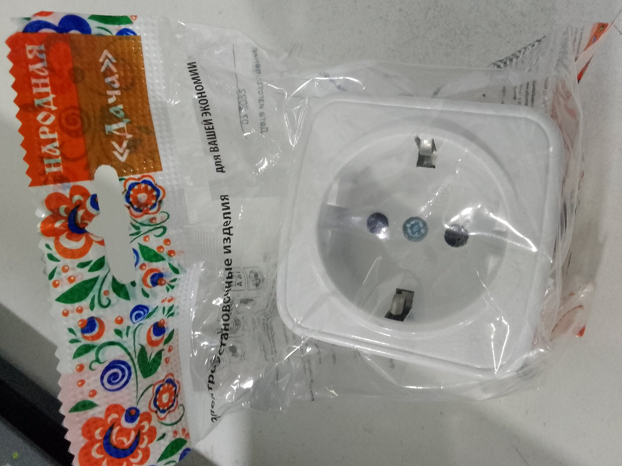 Розетка 1 местная с землей открытой установки IP20 16А, белая "Дача" Народная