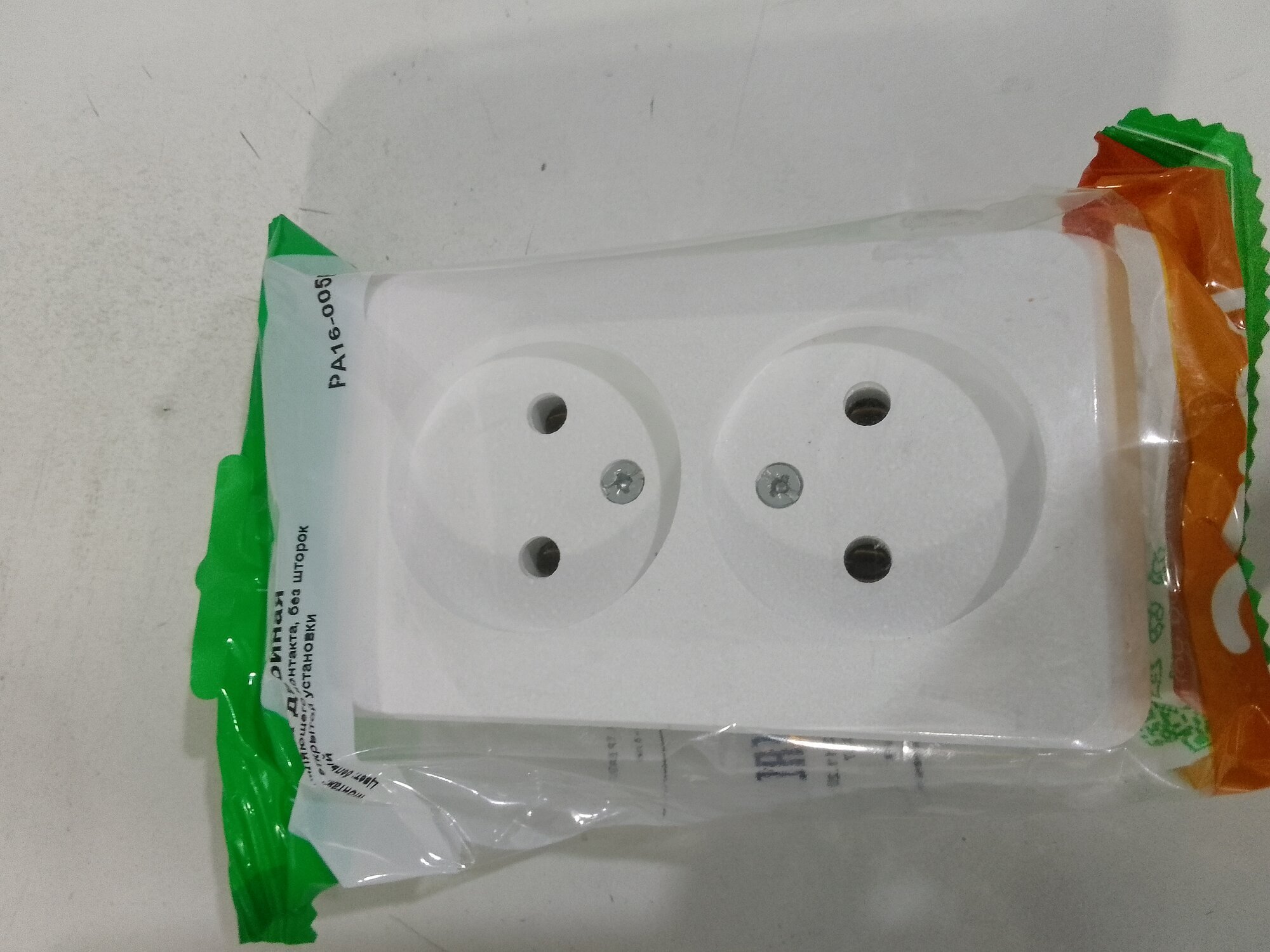 Розетка 2-местная, открытой установки, , без заземления, белая