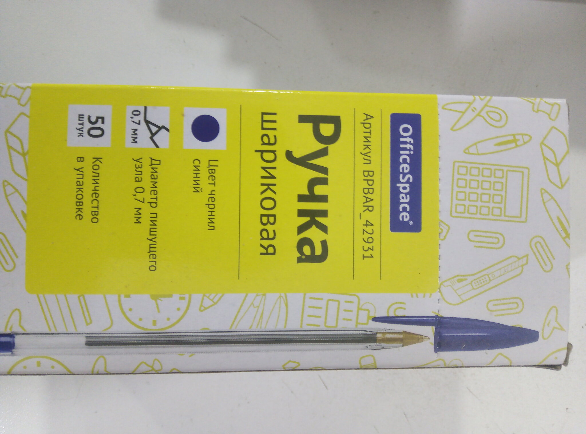 Ручка шариковая синяя, 0,7мм 50шт